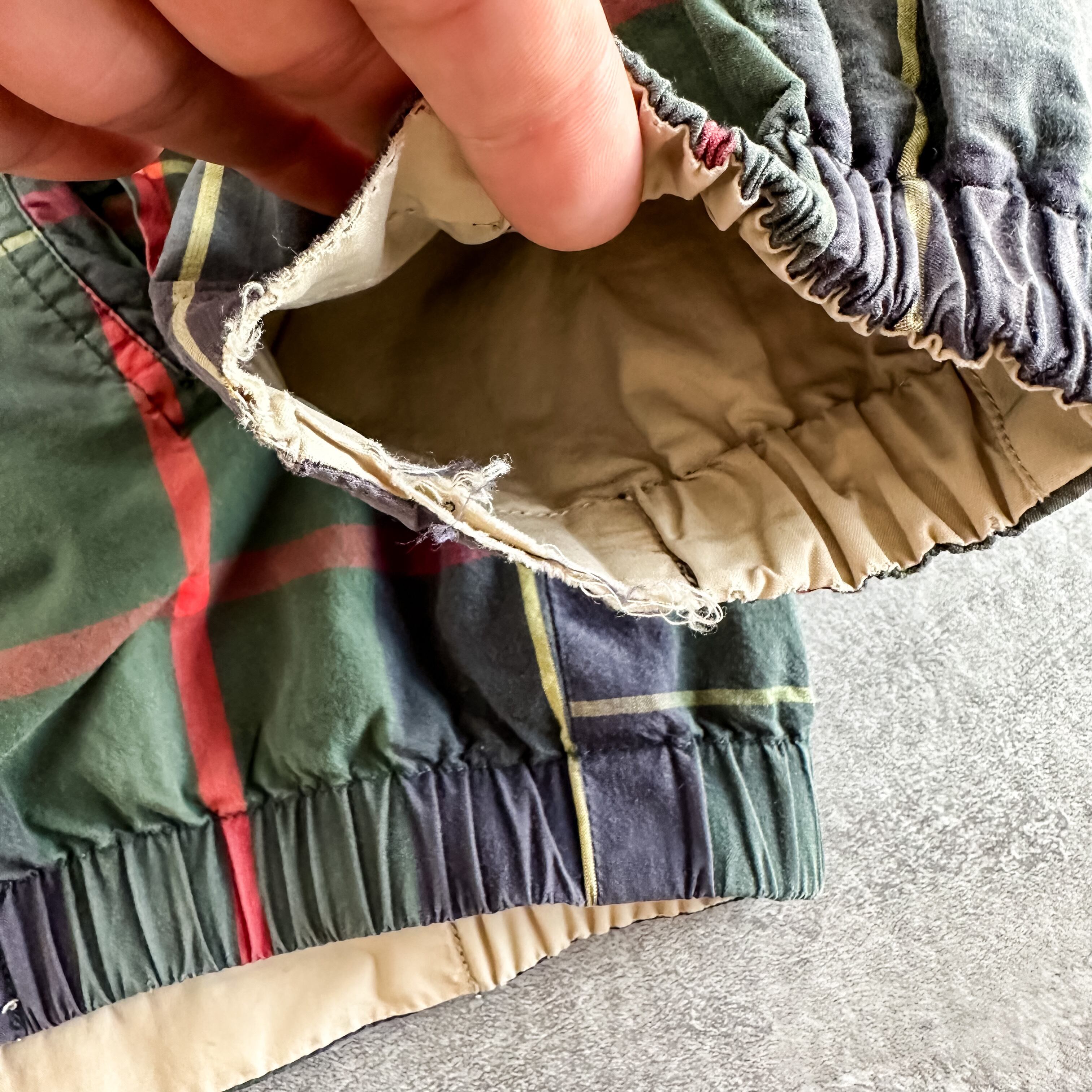 A面はグリーンやネイビーなど配色の良いチェック柄で、B面はベージュ単色のリバーシブル仕様。