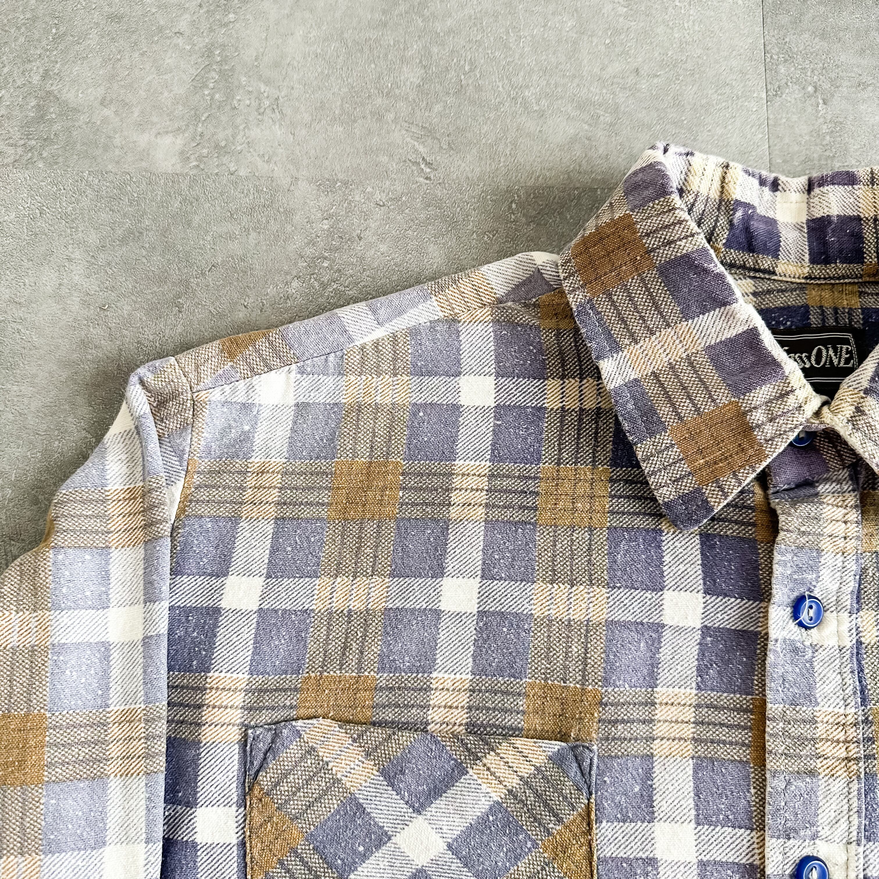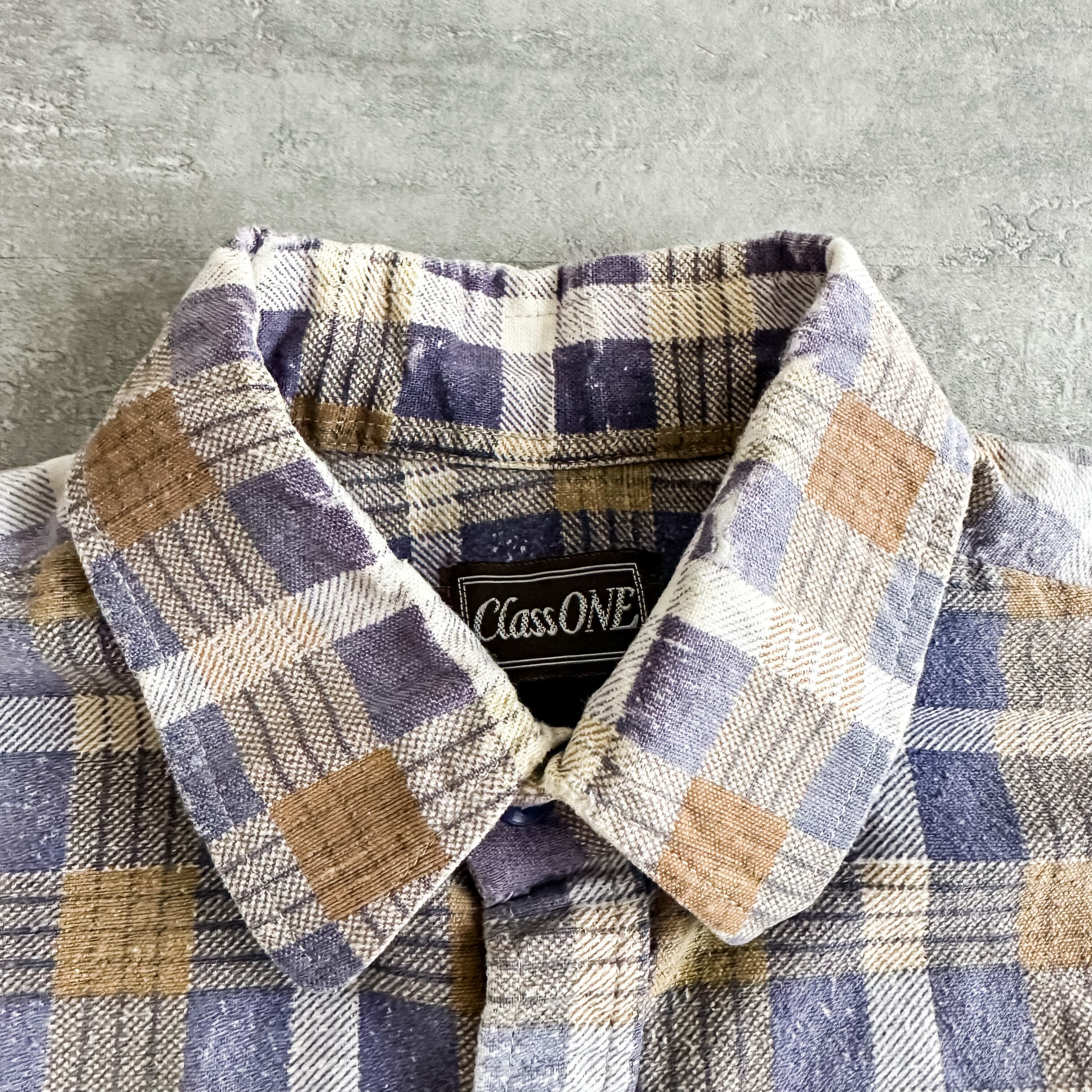 1980's~ plaid pattern super fade cotton×viscose flannel shirt