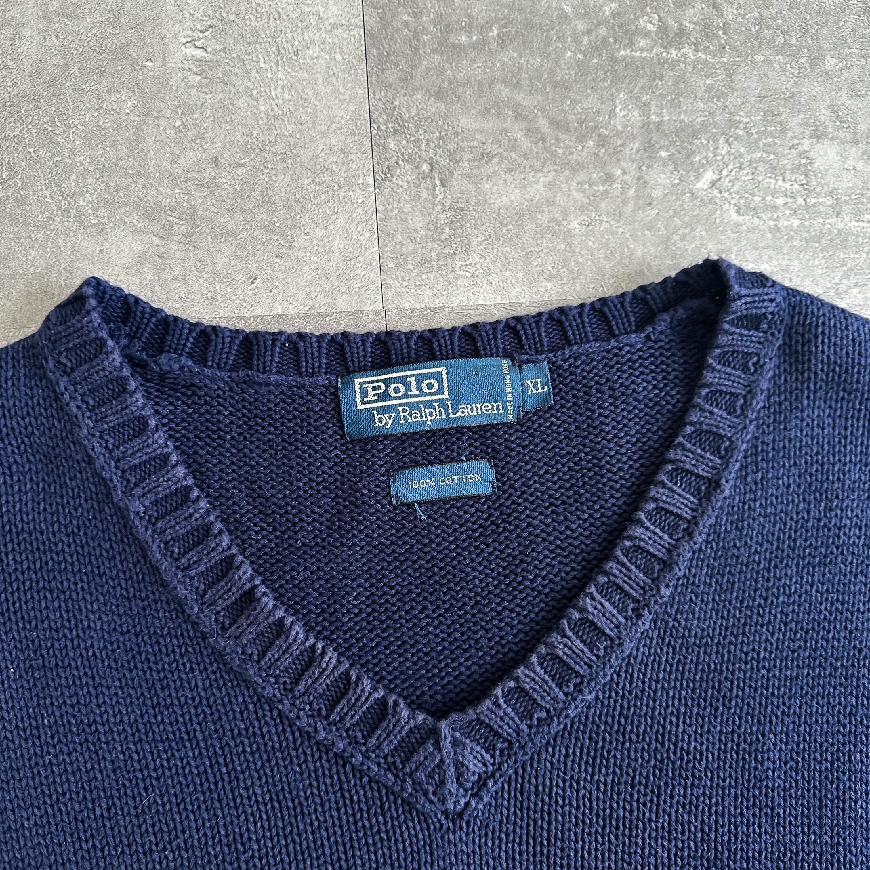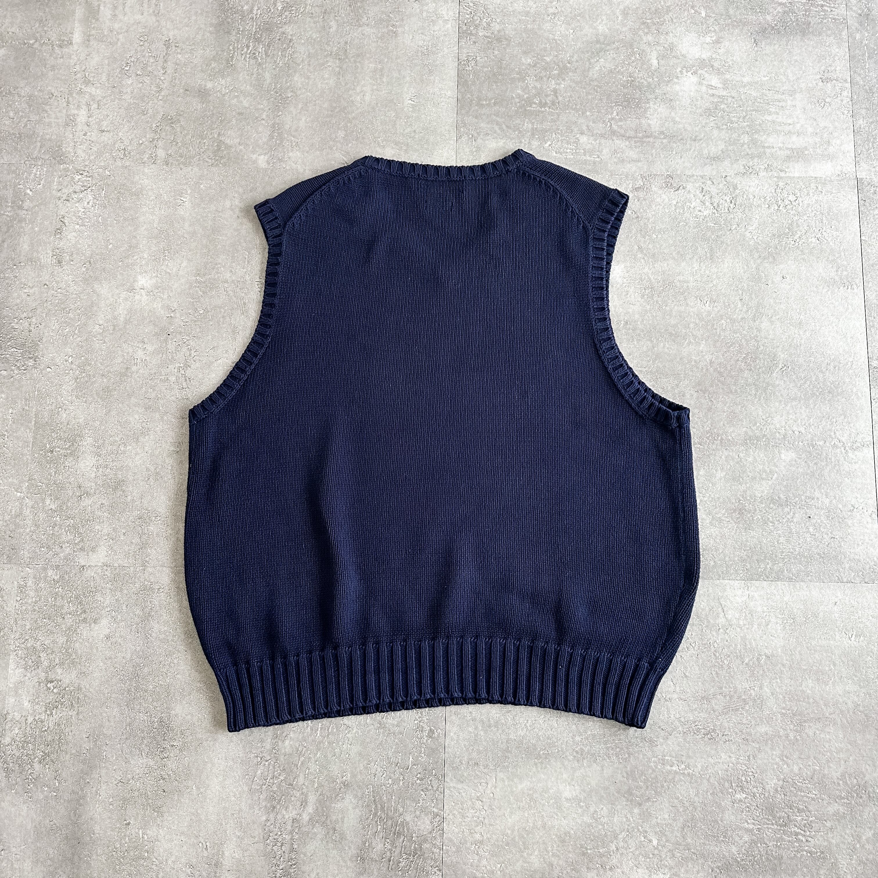 1990's "Polo Ralph Lauren" navy cotton knit vest made in HONG KONG