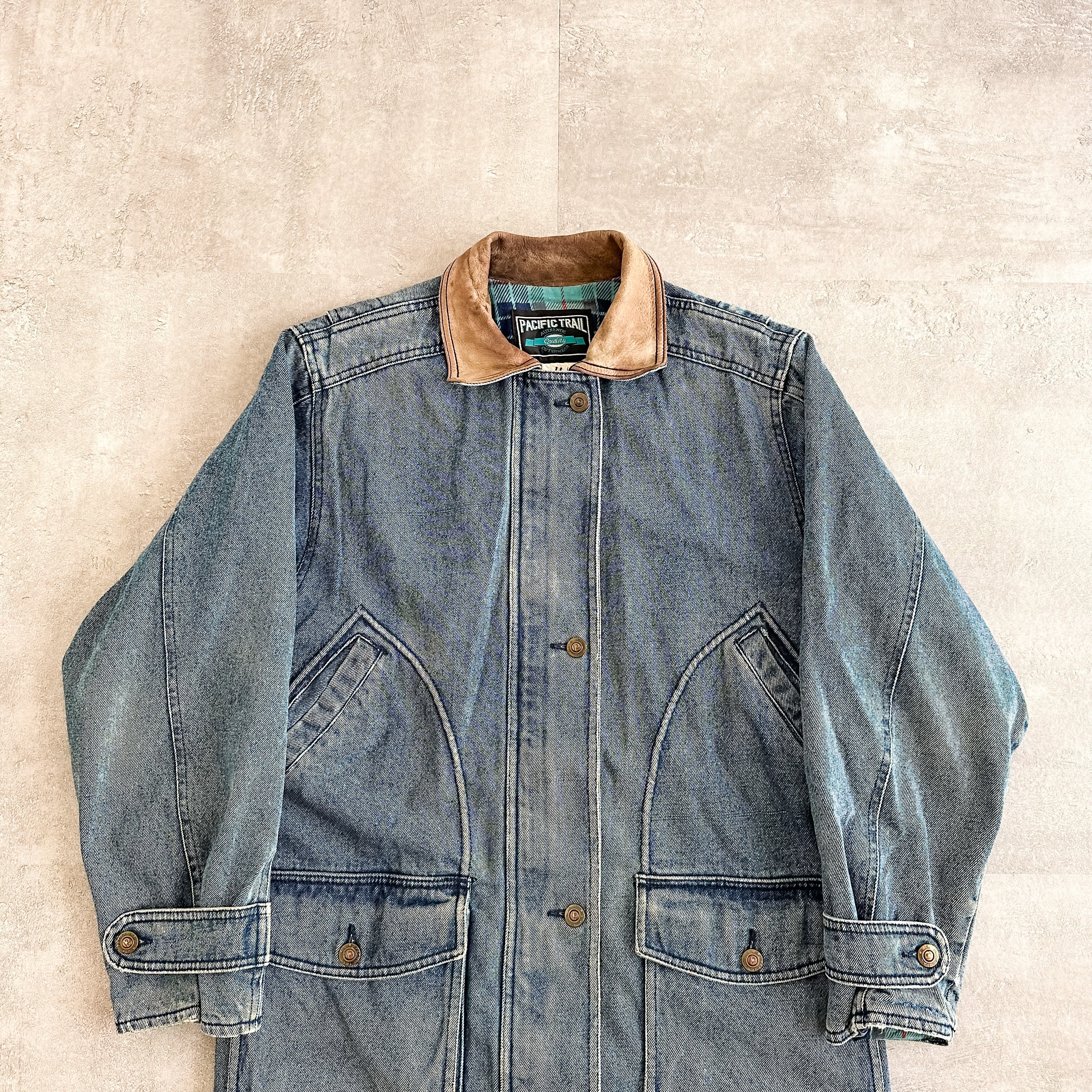 1990's "PACIFIC TRAIL" leather collar denim hunting jacket