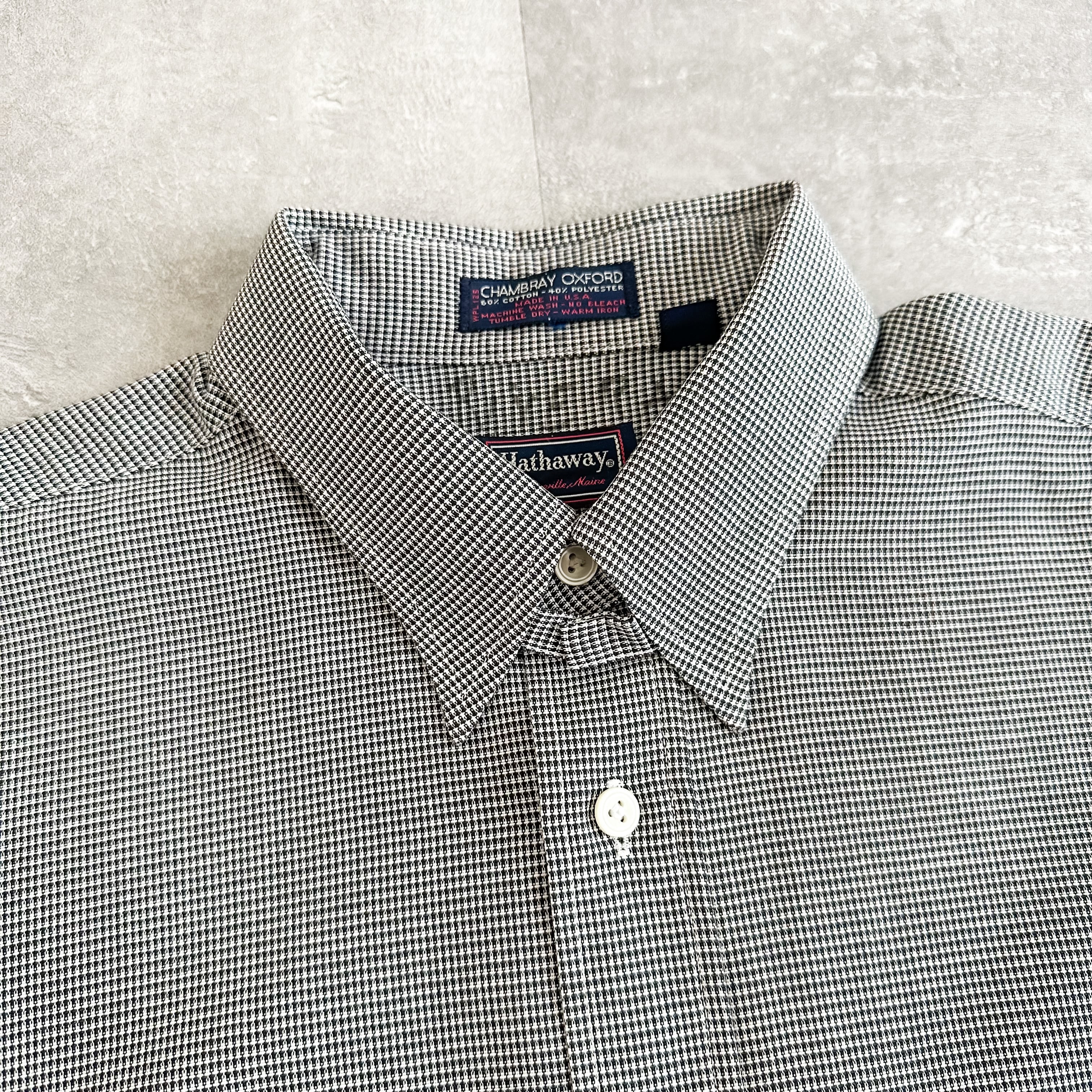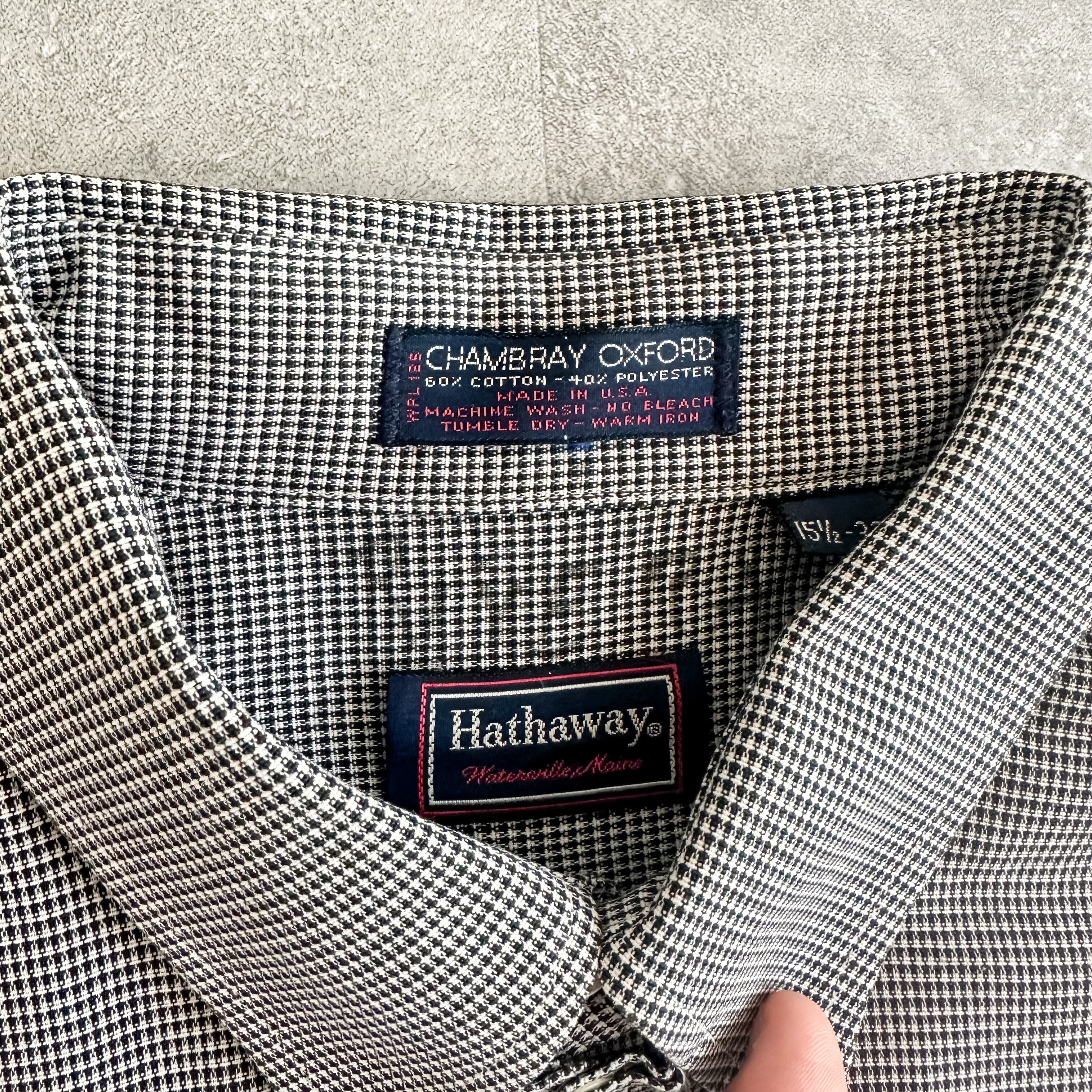 1980's~ "Hathaway" chambray oxford patterned allover shirt made in USA