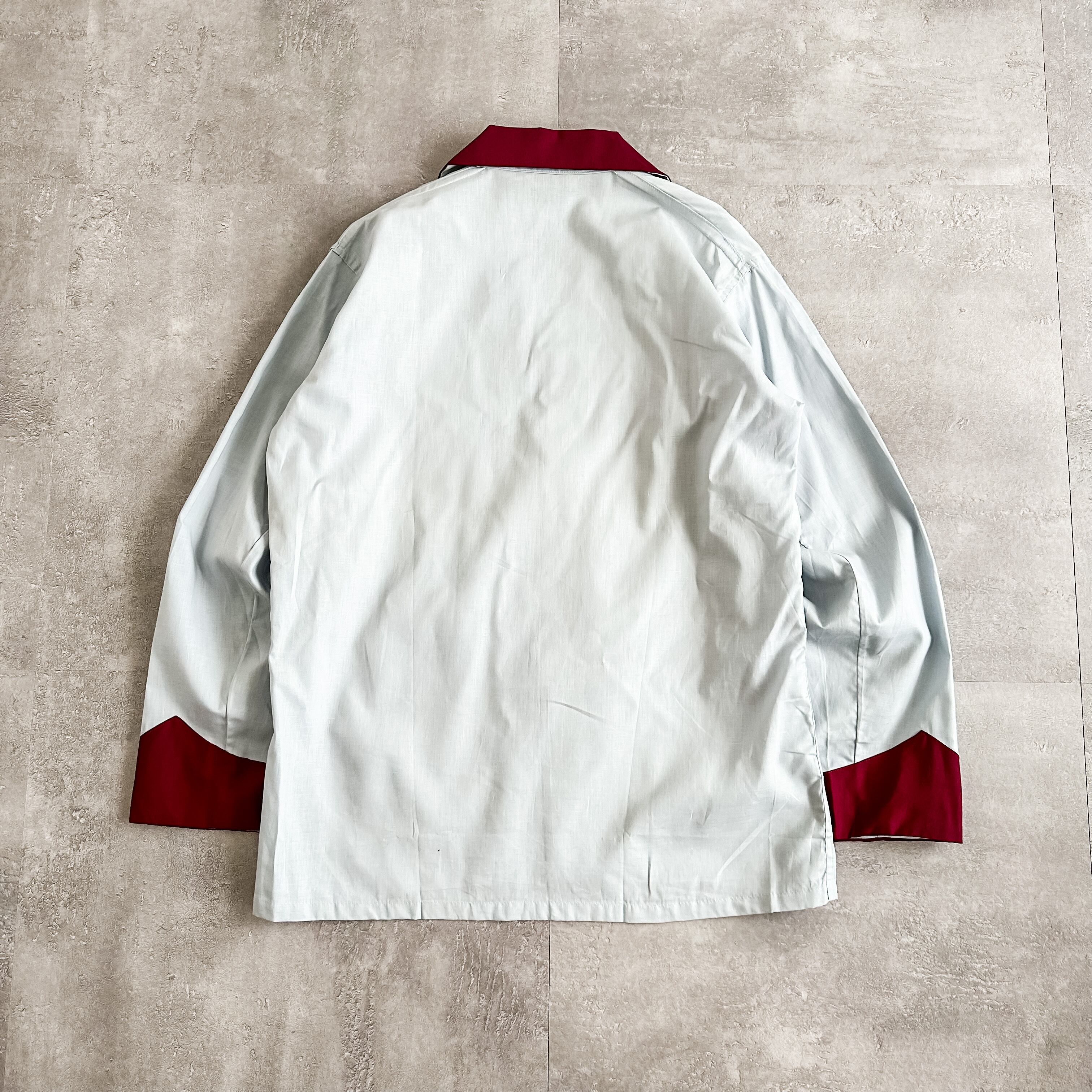 ライトブルーとマルーンカラーのツートンに切り替えられた珍しいカラーリングの一着です。