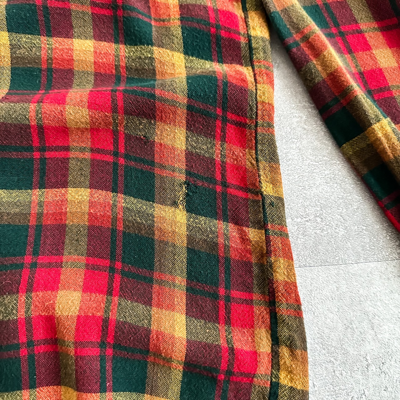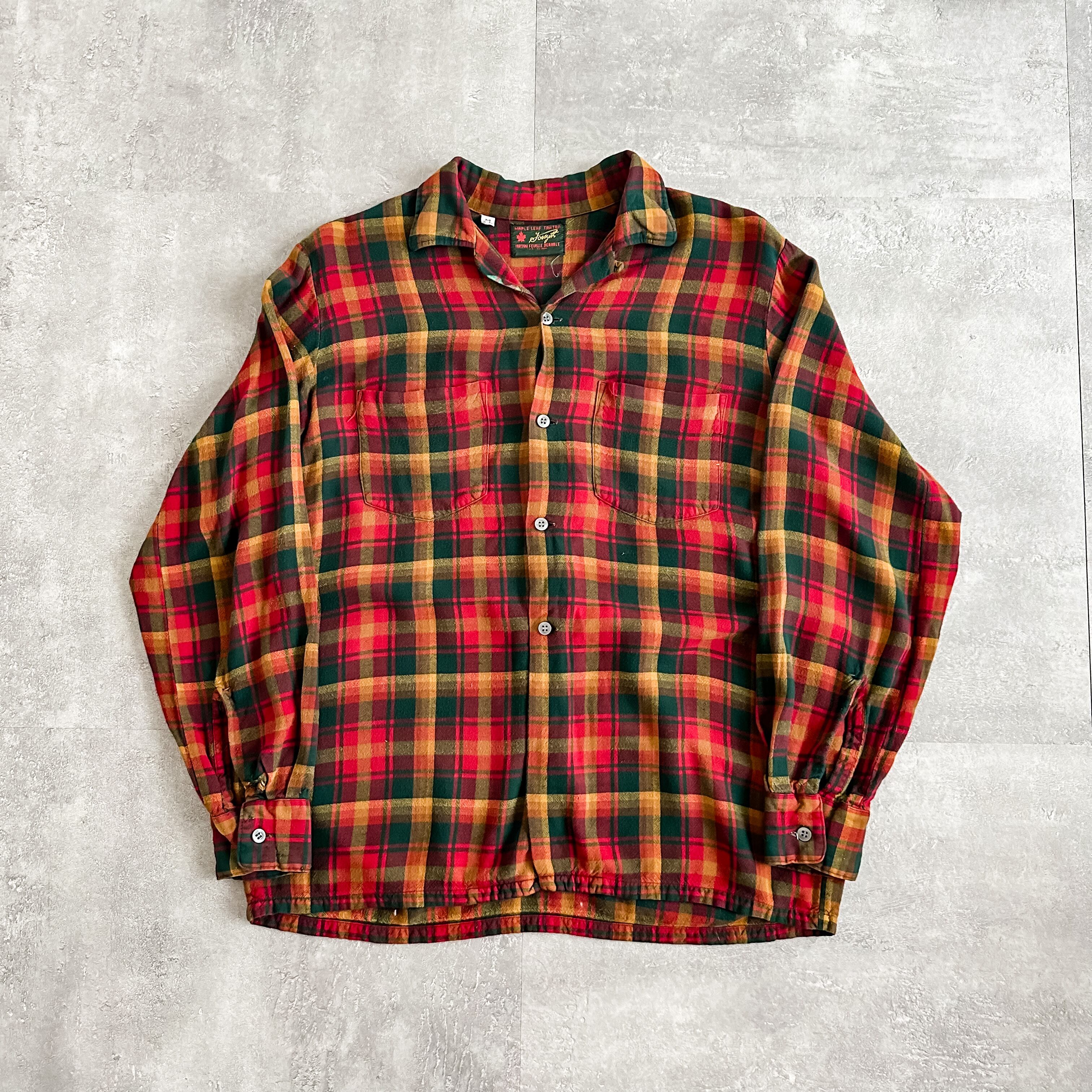 Vintage 1960's~ plaid pattern wool×rayon roop collar shirt