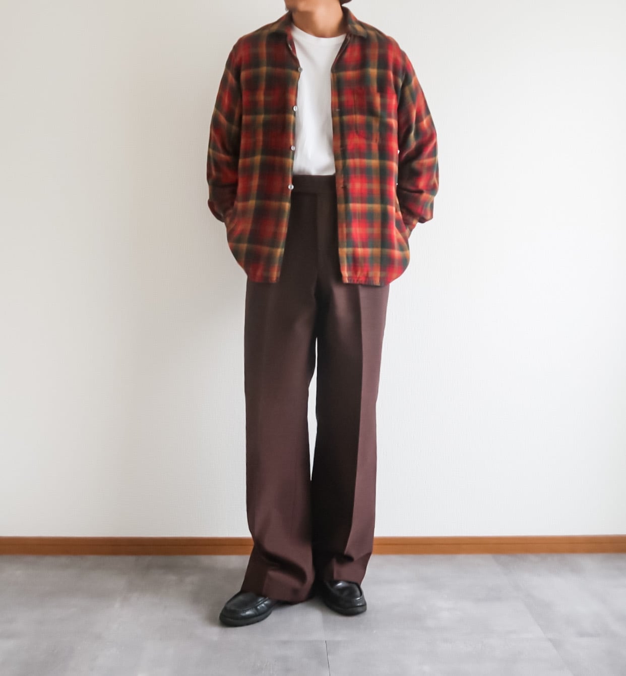 ウールとレーヨンが混ざったような少し落ち感のある混紡ファブリックに、配色の良いチェックパターンも素晴らしいですね。