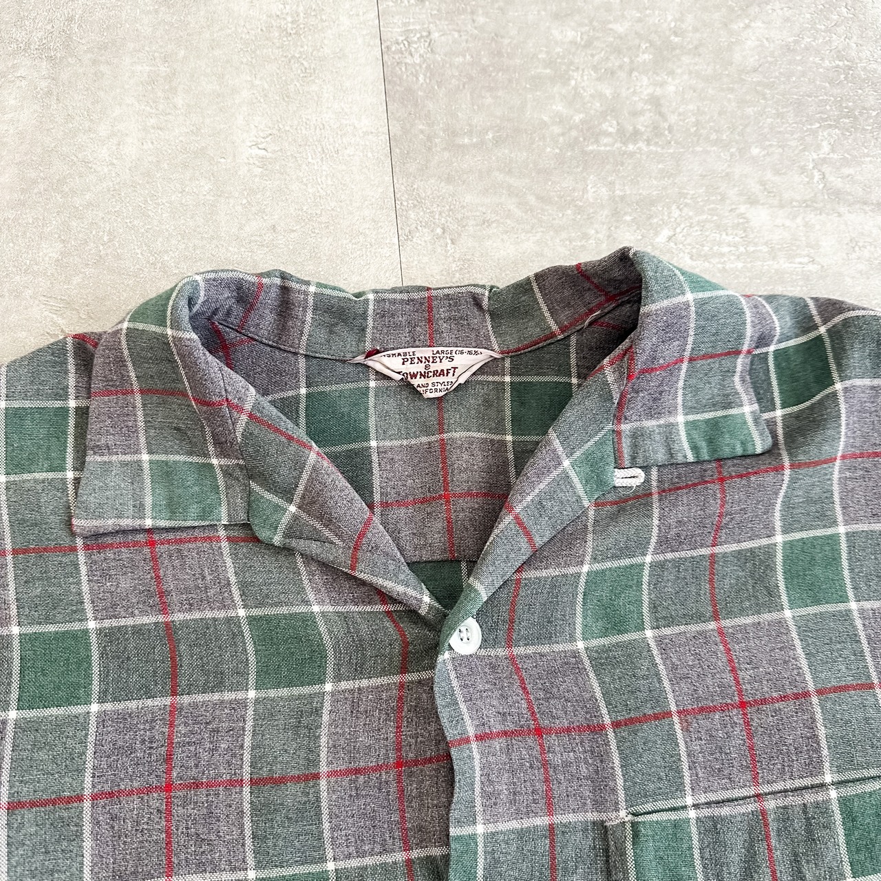 Vintage ~1960's "TOWN CRAFT" plaid pattern box silhouette roop collar rayon shirt