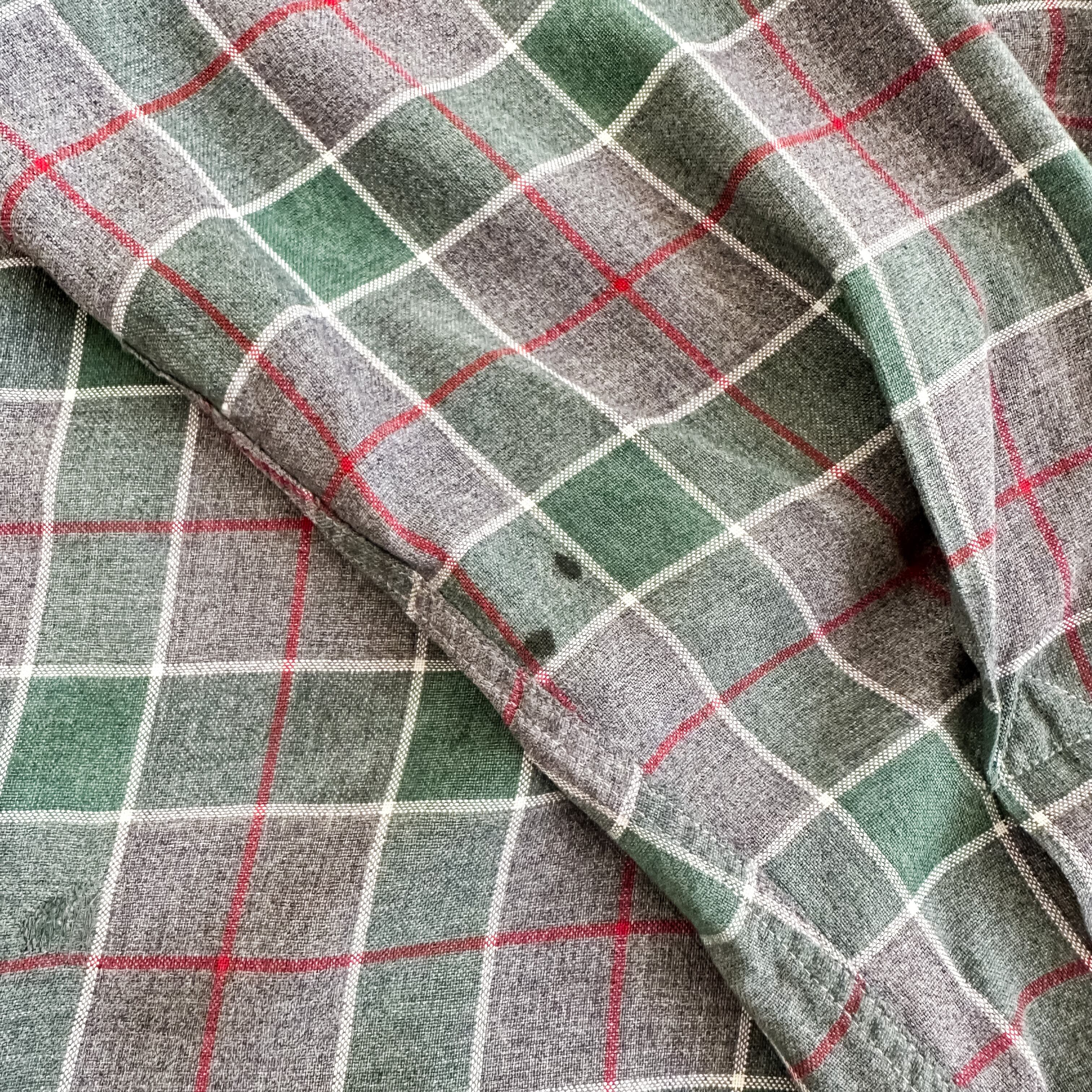 小さいサイズが多い中L表記の大きめなサイズに、配色の良いグレーベースのチェック柄、ブランドもTOWN CRAFTと素晴らしい条件の一枚です。