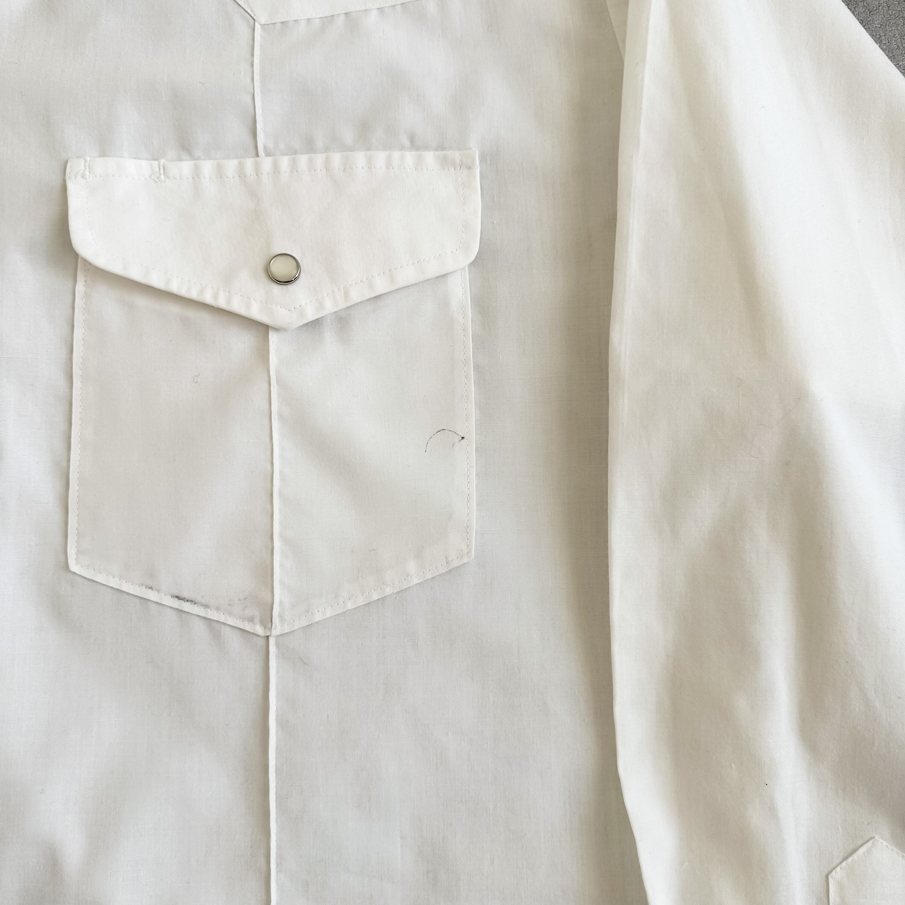 男臭い印象のウエスタンシャツですが、爽やかなホワイトカラーにセンタープリーツの入った少しドレス感のある綺麗な雰囲気の一枚です。