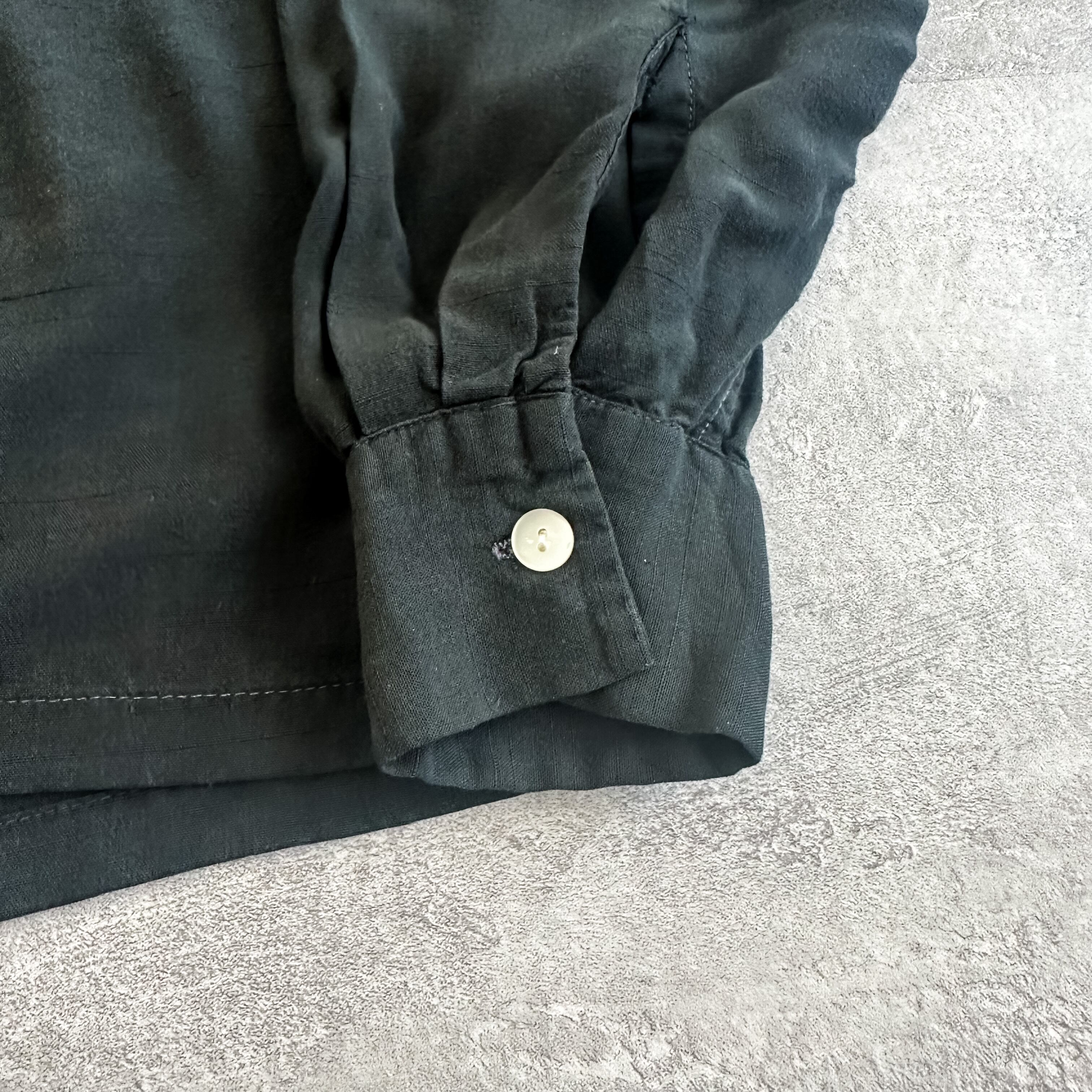 ポケットと胸に刺繍の入るデザインに、ヴィンテージレーヨンの中でも球数の少ない希少なブラックカラー。