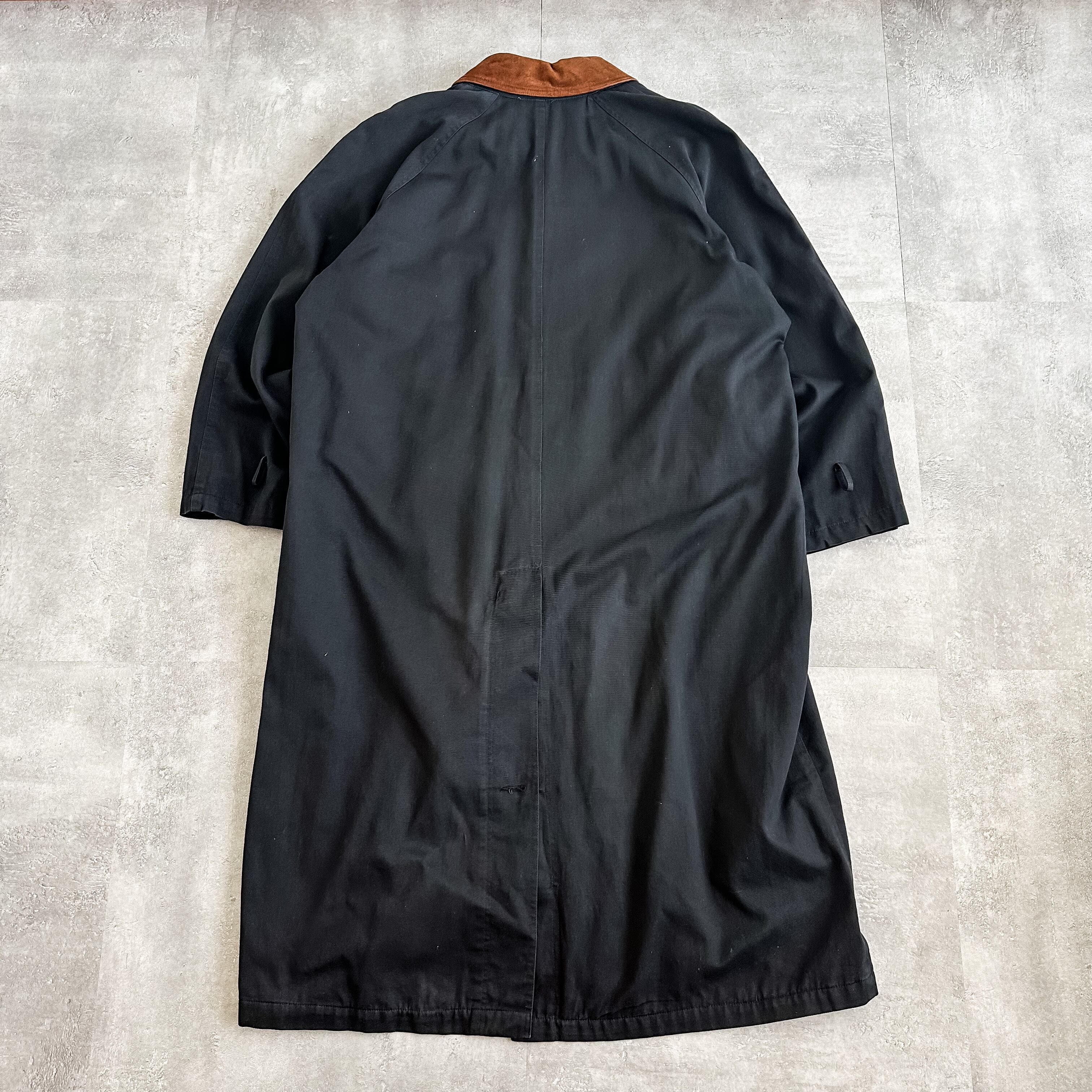 1990's leather collar black cotton super long balmacaan coat