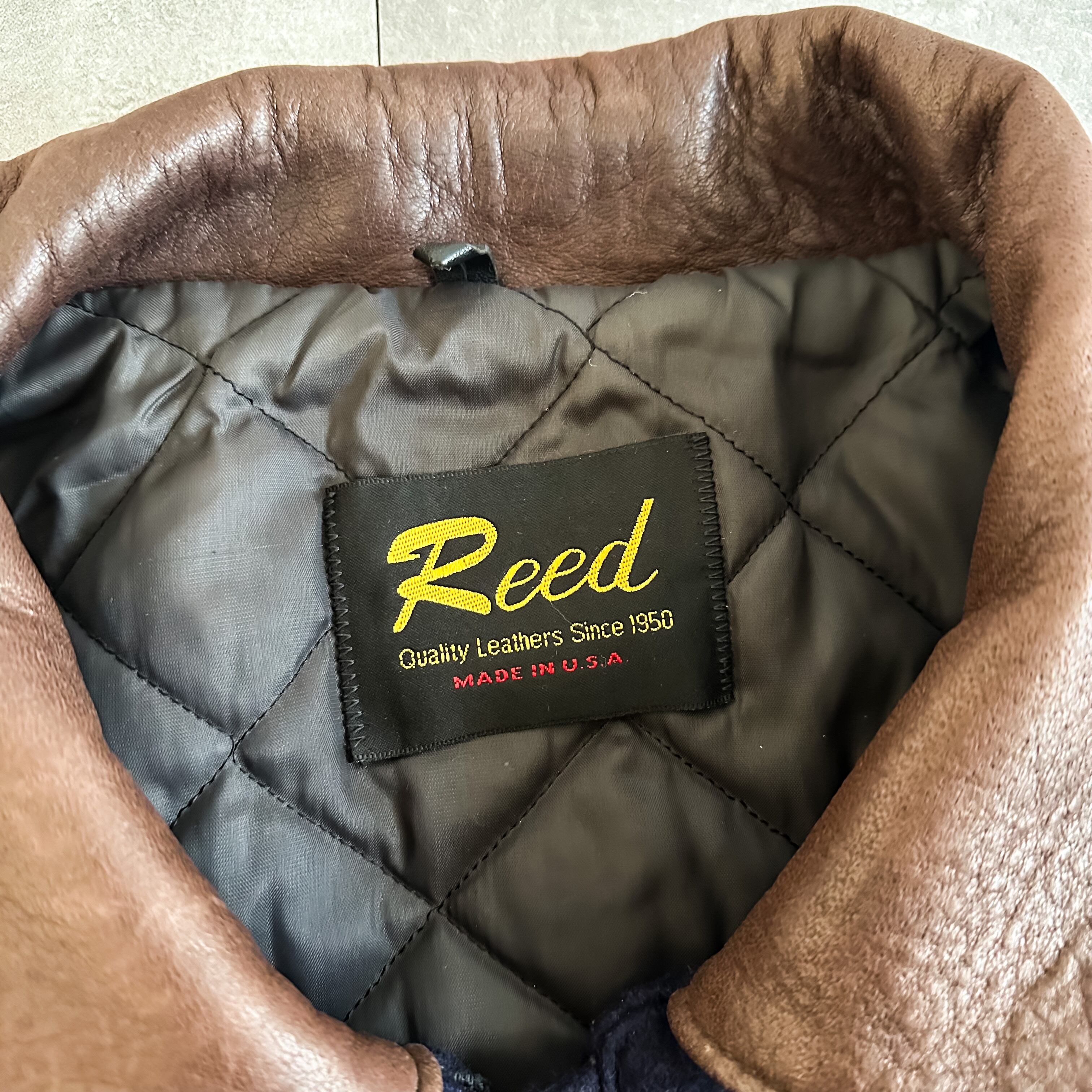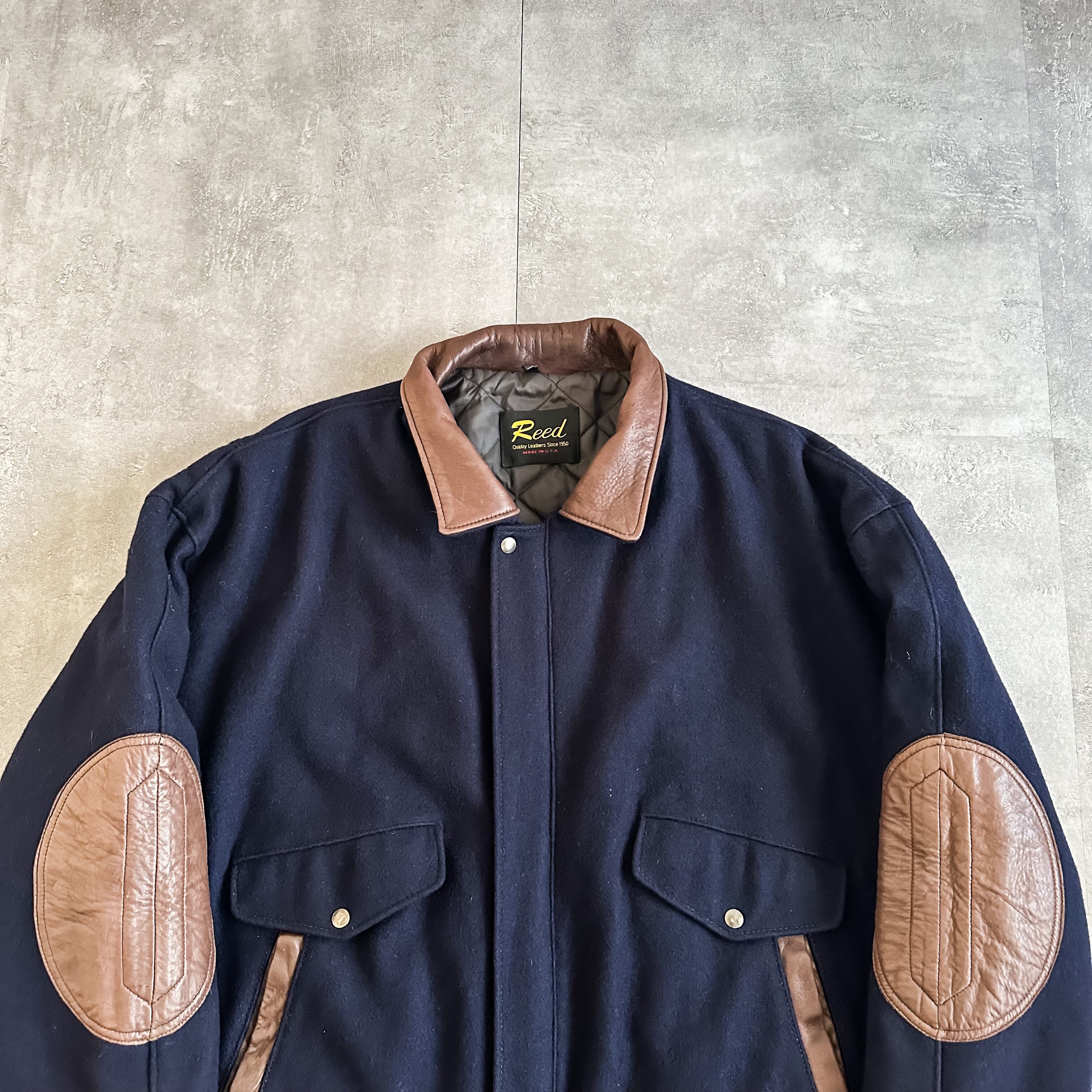 1990's~ "Reed" faux leather switching design wool jacket with elbow patch