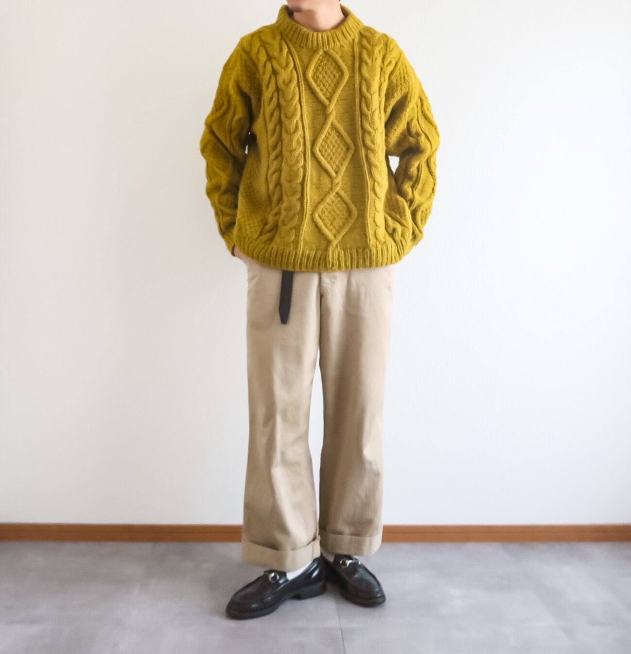 総柄の独特なパターンの物が多い印象ですが、こちらは珍しい立体感のあるケーブル編みの一着です。