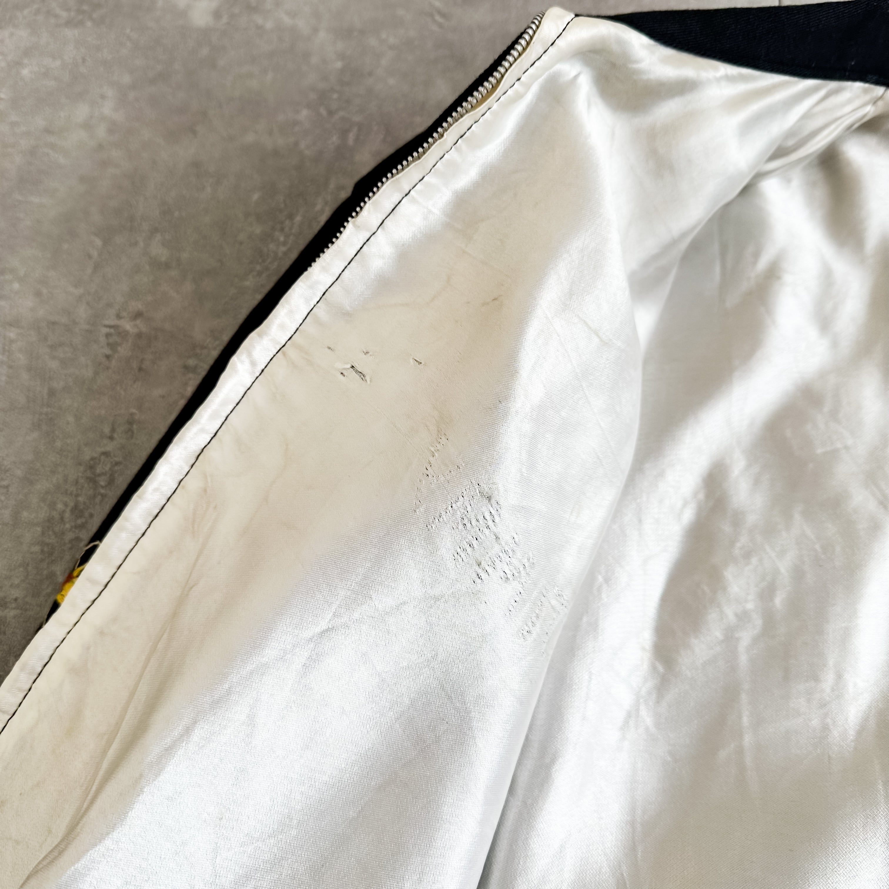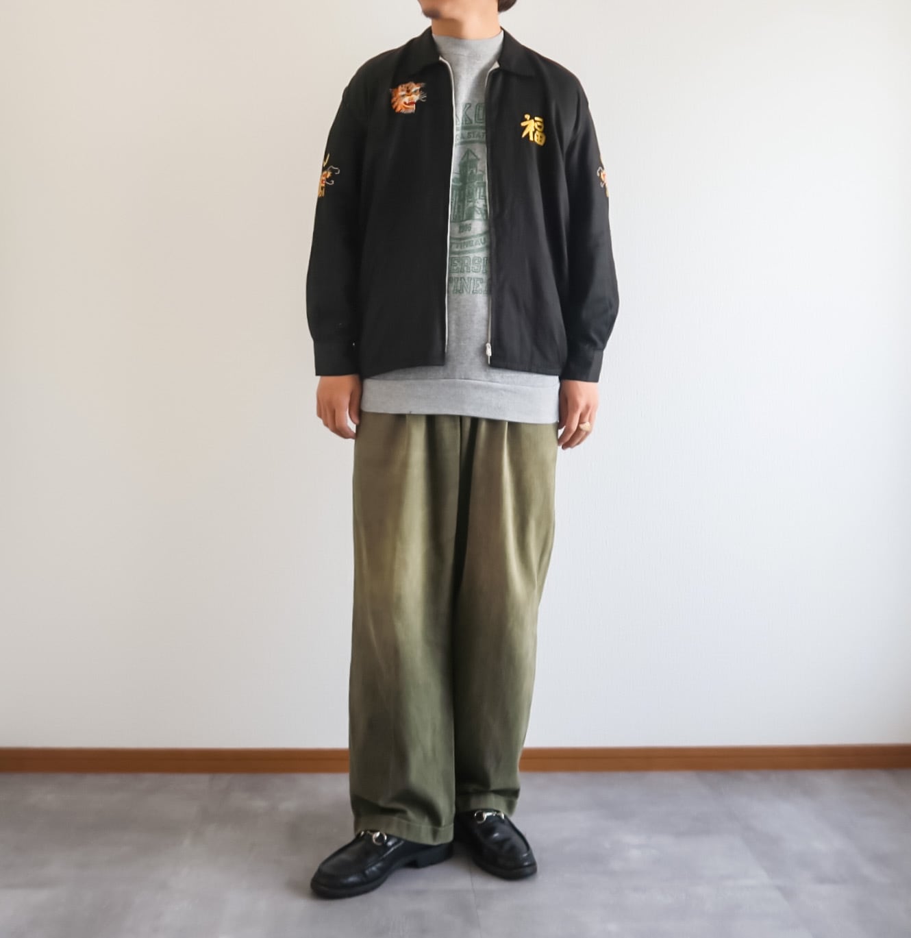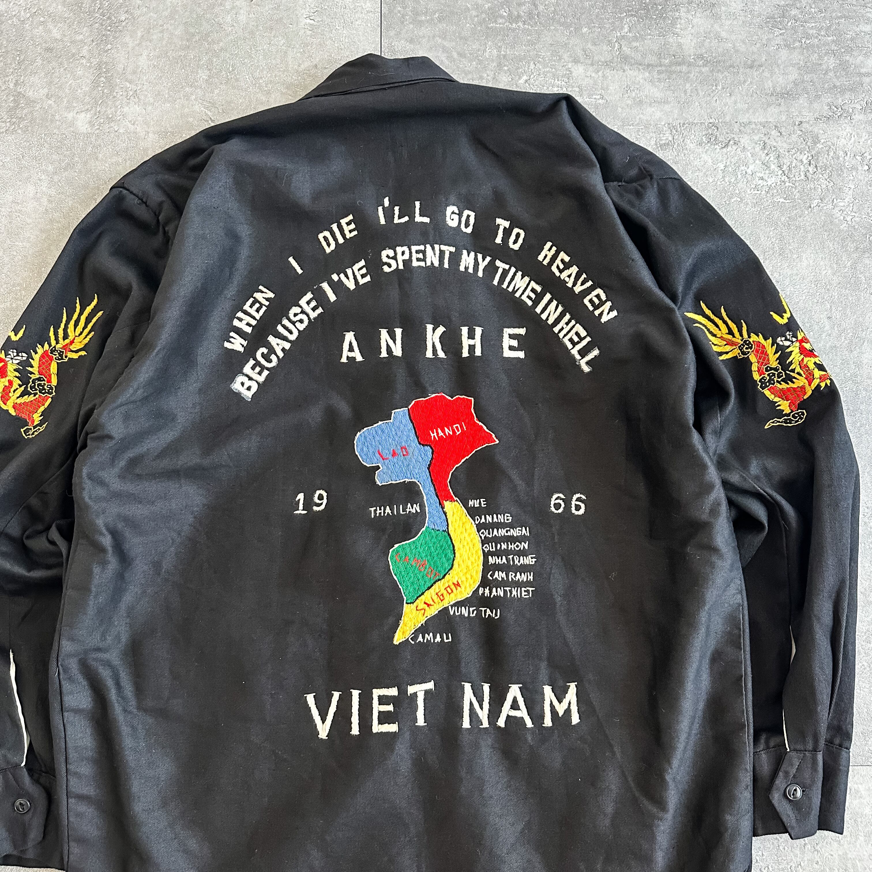 60〜75年終戦のベトナム戦争に派遣されていた米兵たちがお土産として持ち帰ったもので、スカジャンとはまた趣の異なる刺繍のデザインや生地感から非常に人気の高いアイテムですね。