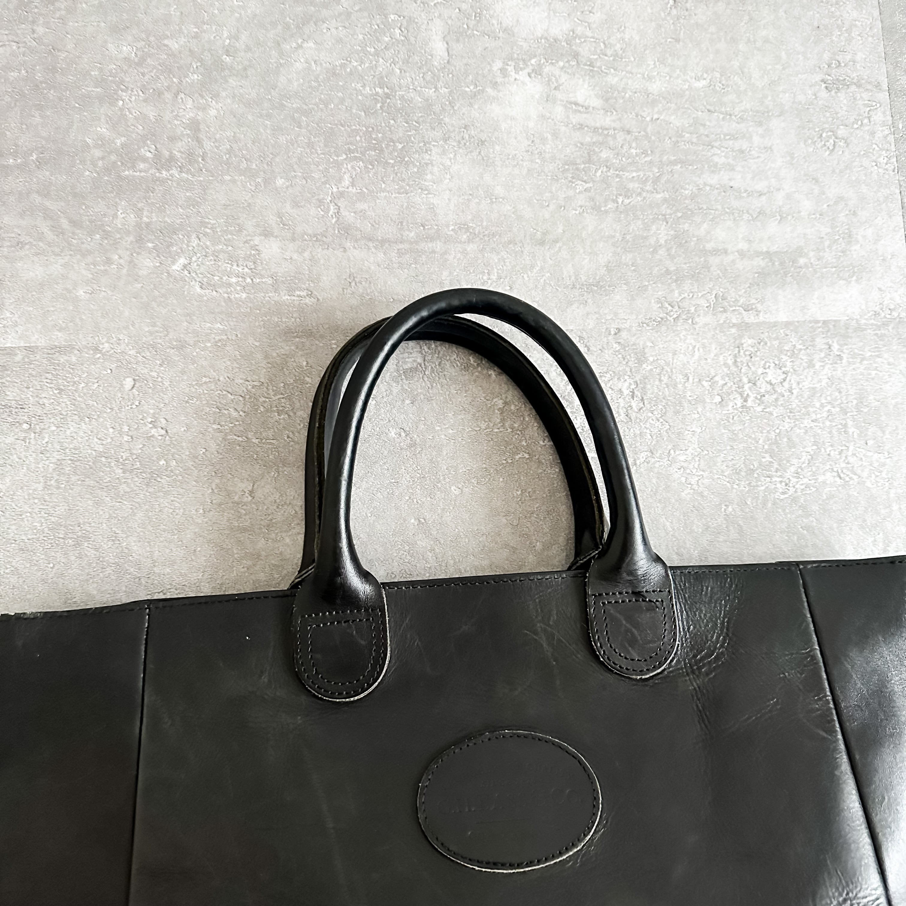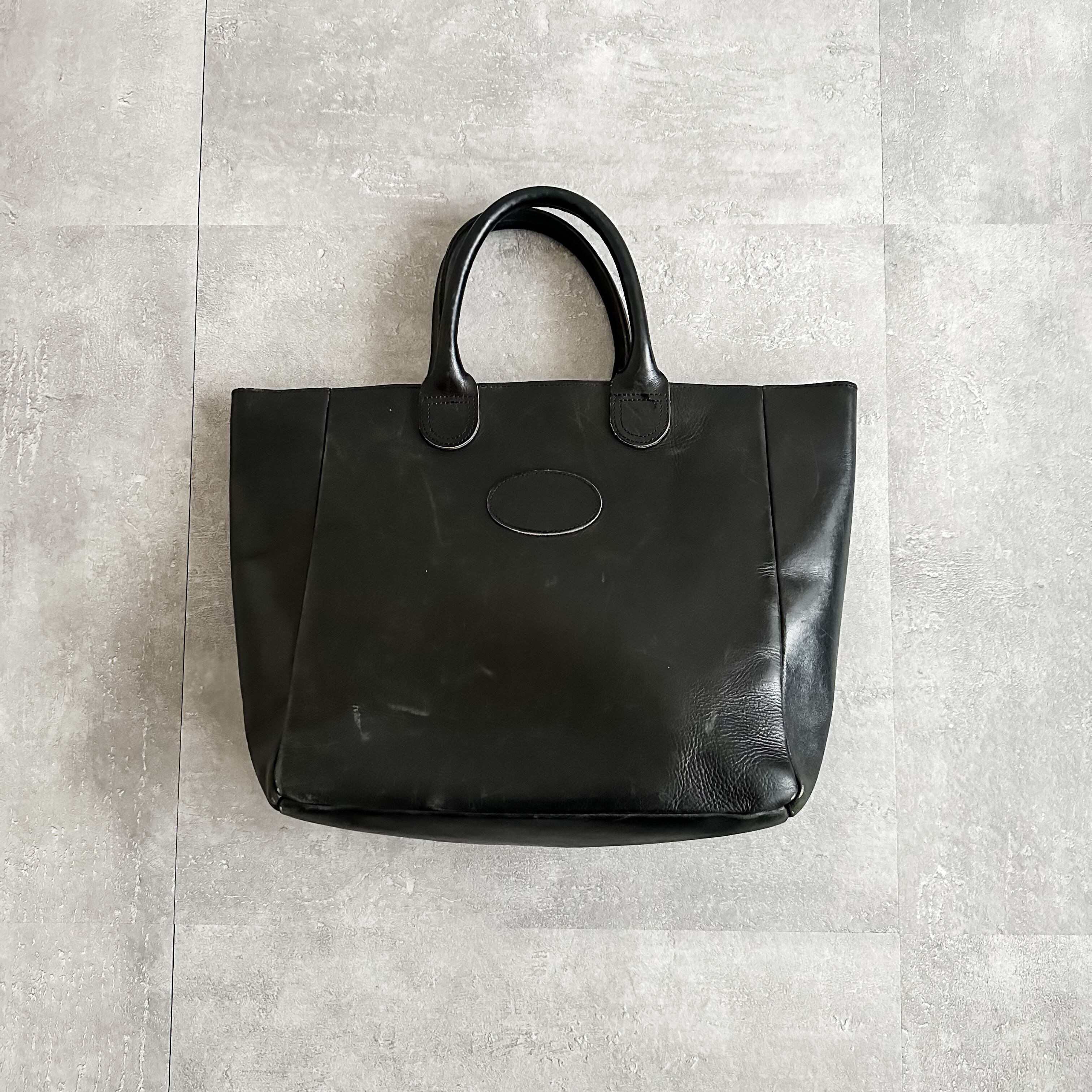 ~1990's "G.H.BASS" black leather tote bag