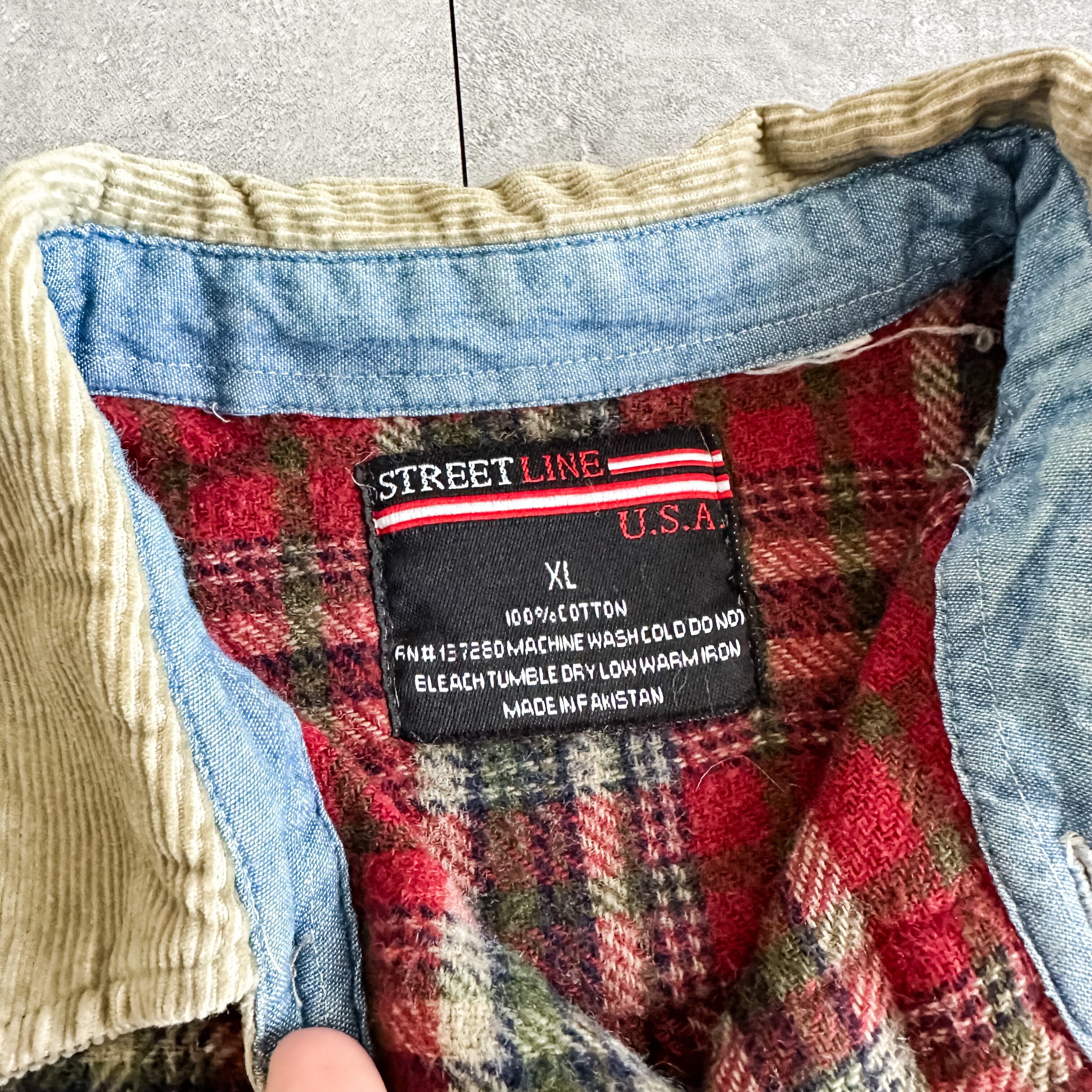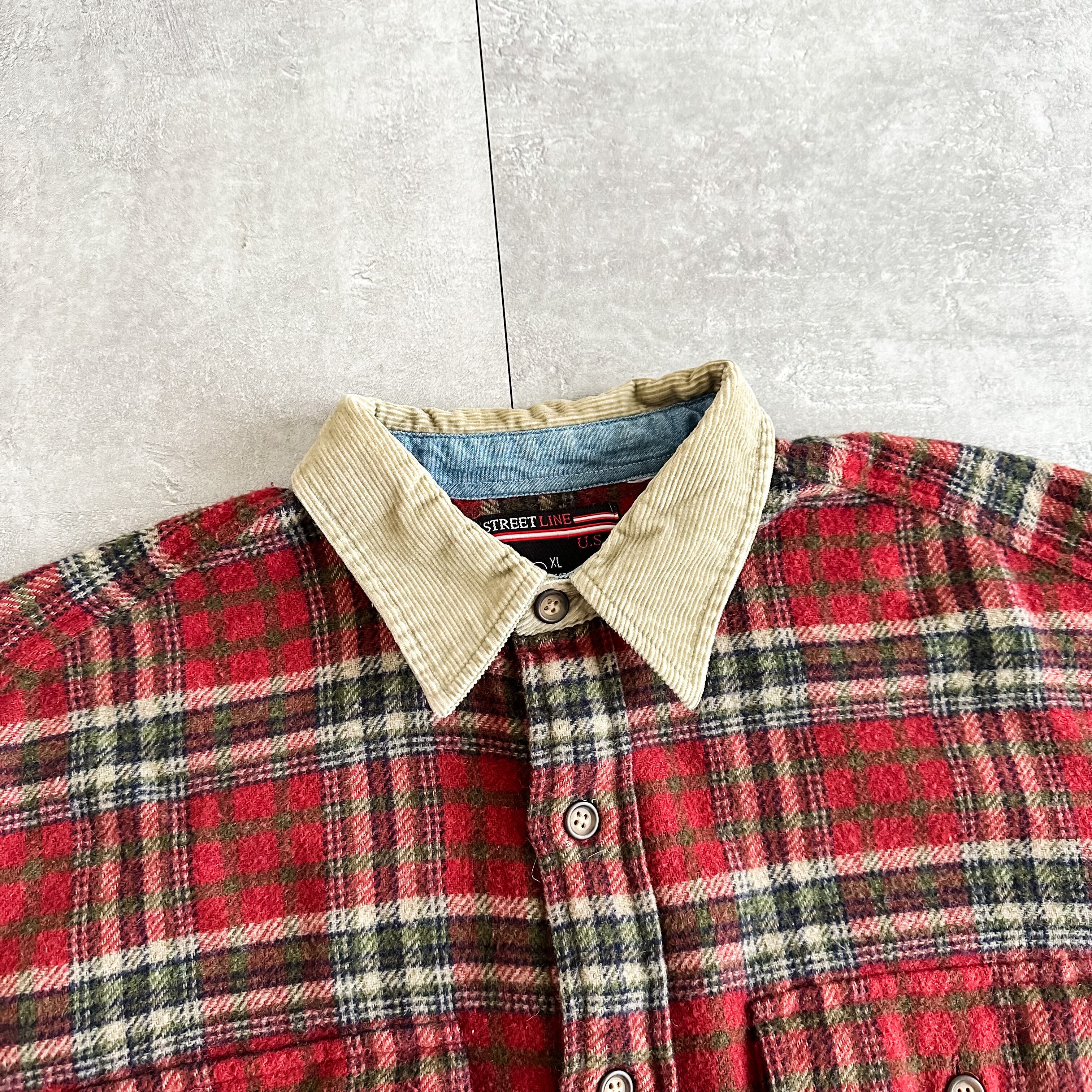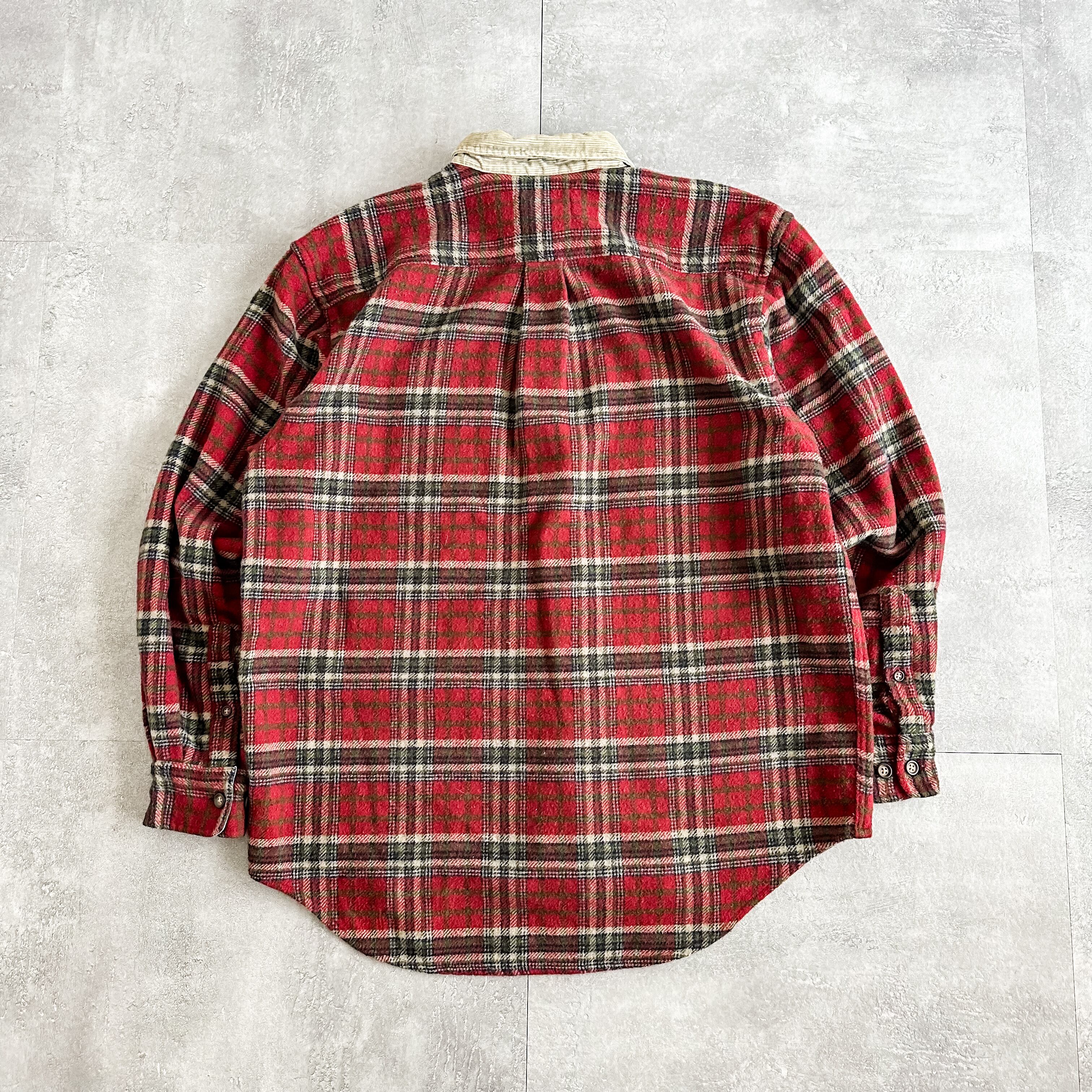 1990's plaid pattern corduroy collar cotton flannel shirt