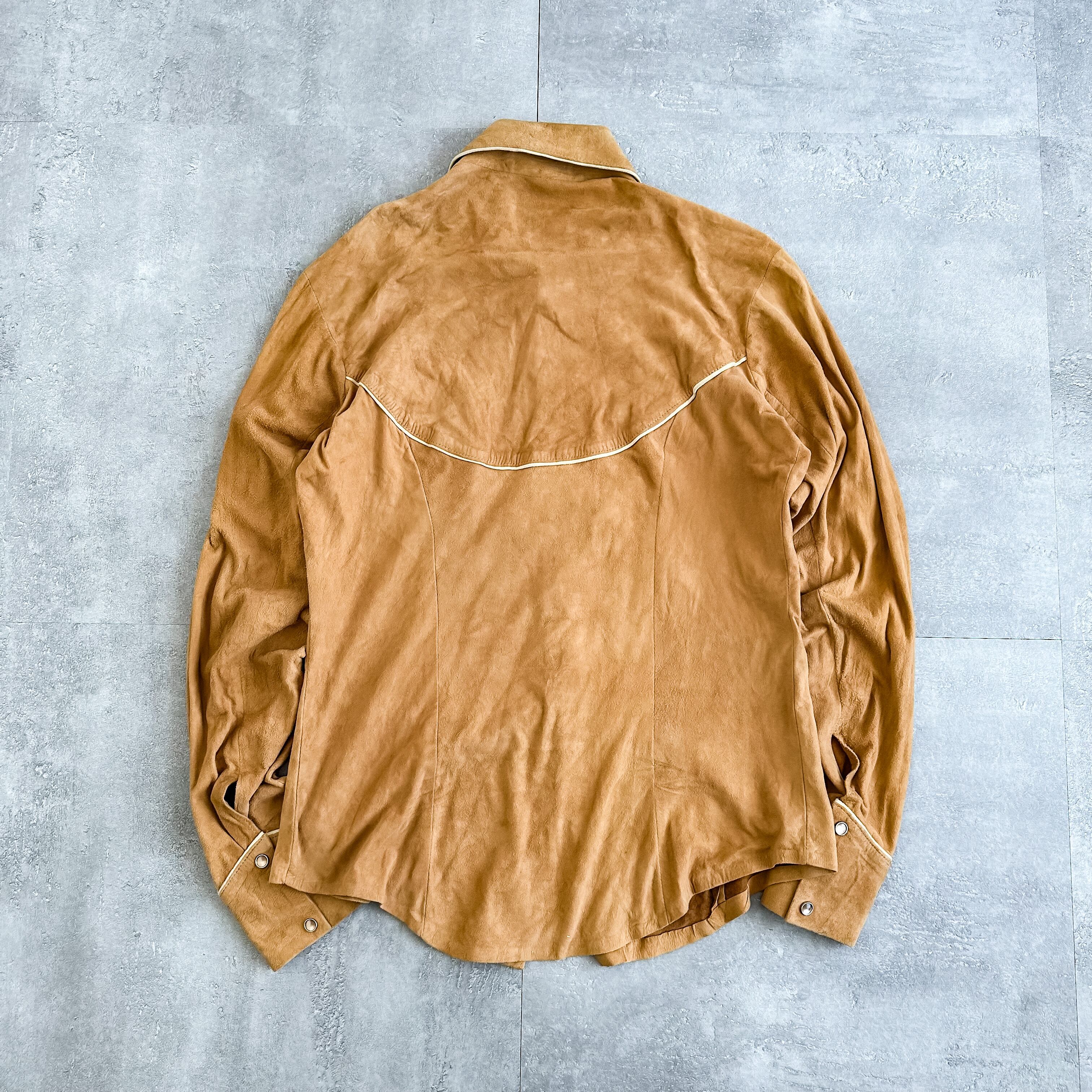 毛足が短くマットで柔らかい質感のヌバックレザーに、ウエスタンらしい胸のパイピングデザインがグッドな一枚です。