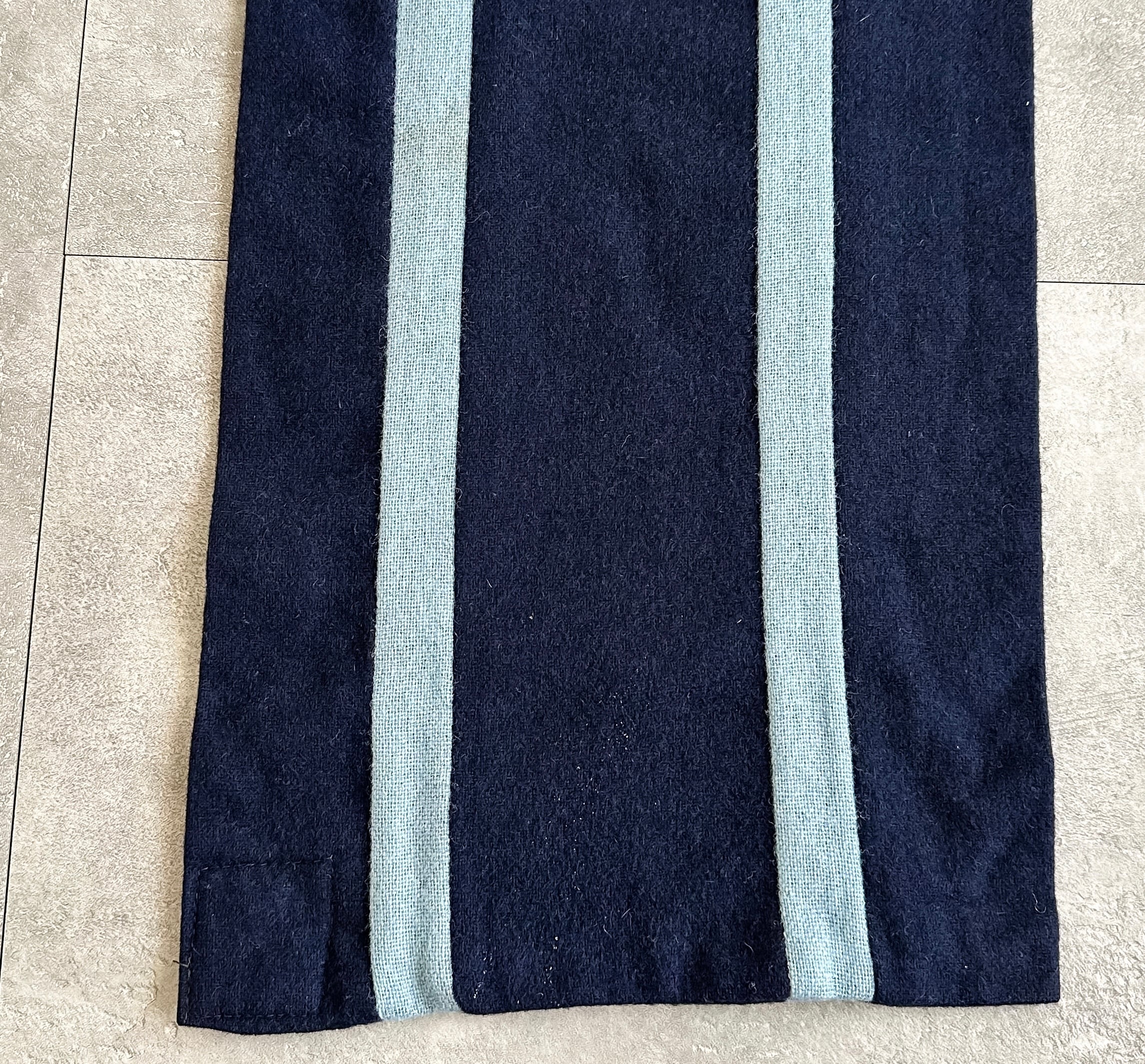 保温性の高いウール100%に、ダークネイビー×ライトブルーのツートンカラー。