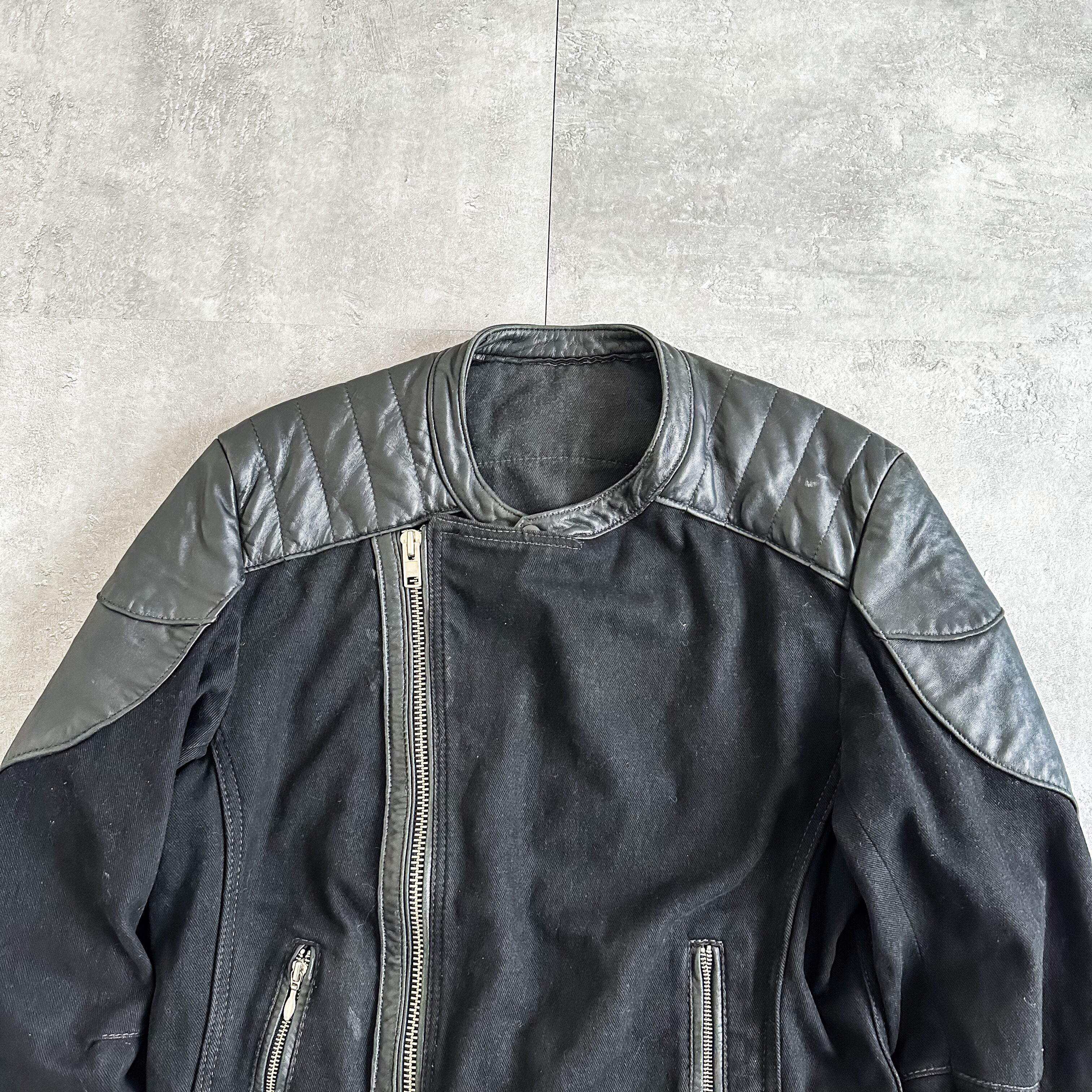 特徴 :1990's頃のかなり珍しいブラックデニムとレザーの切り替えになったライダースジャケット。