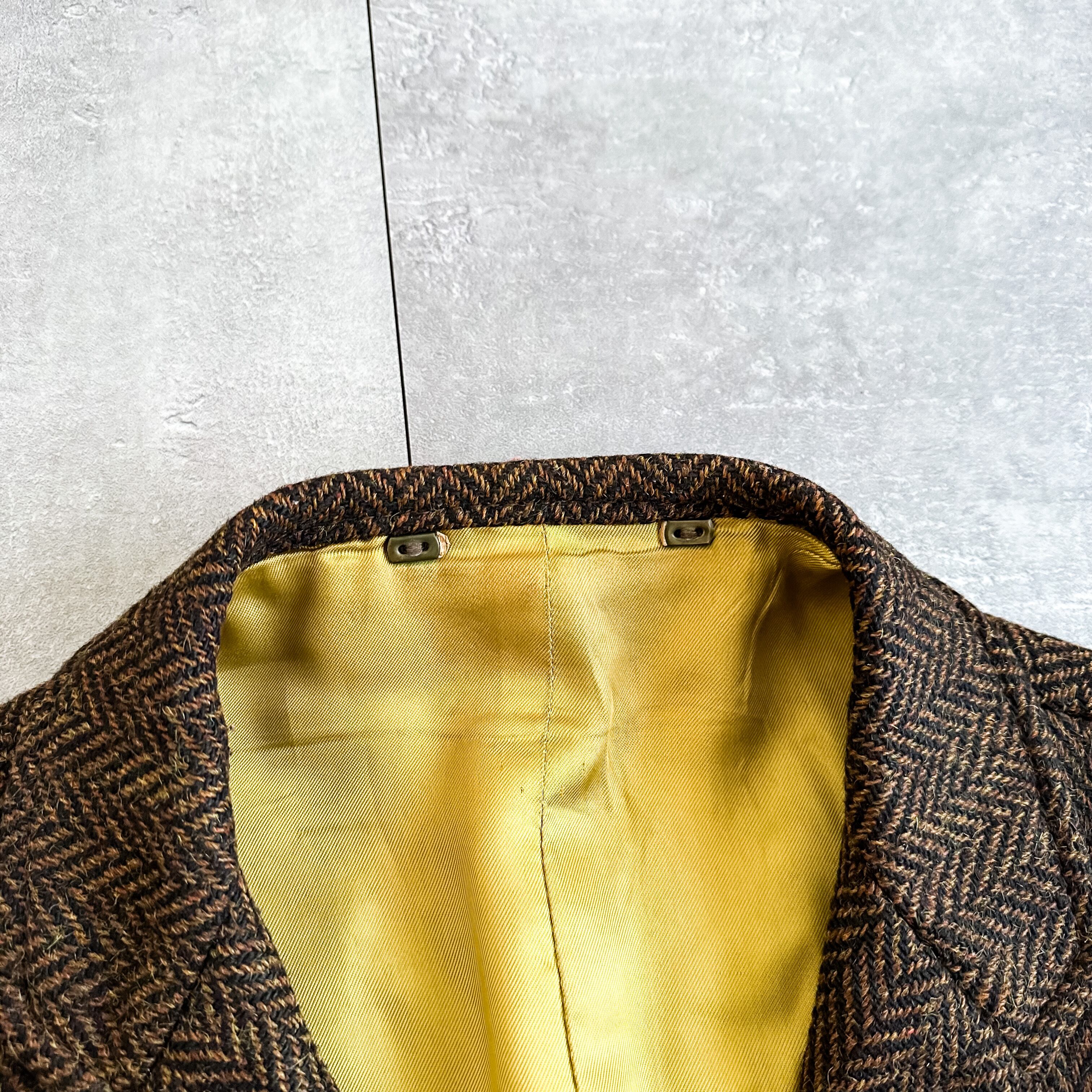 ※※古着故の多少の着用感や画像のように裏地に汚れがございます。革ラベルのタグが欠損しております。表面には虫食いもなくこの年代のツイードでは比較的良好なコンディションかと思います。古着に理解のない方のご購入はお控えください。