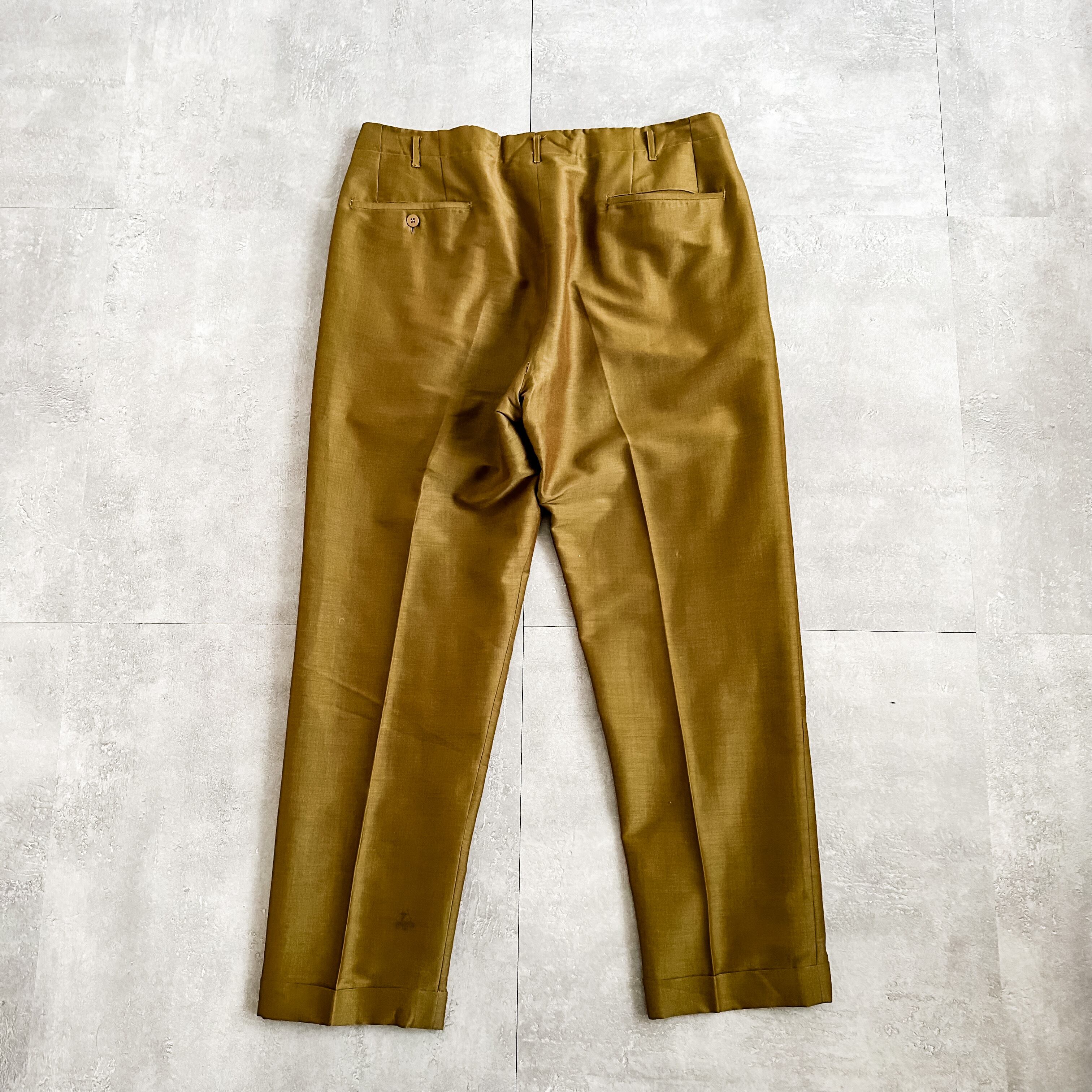 この年代のスラックスの中でもかなり珍しいモヘア×シルクの上質な混紡ファブリックの一本。