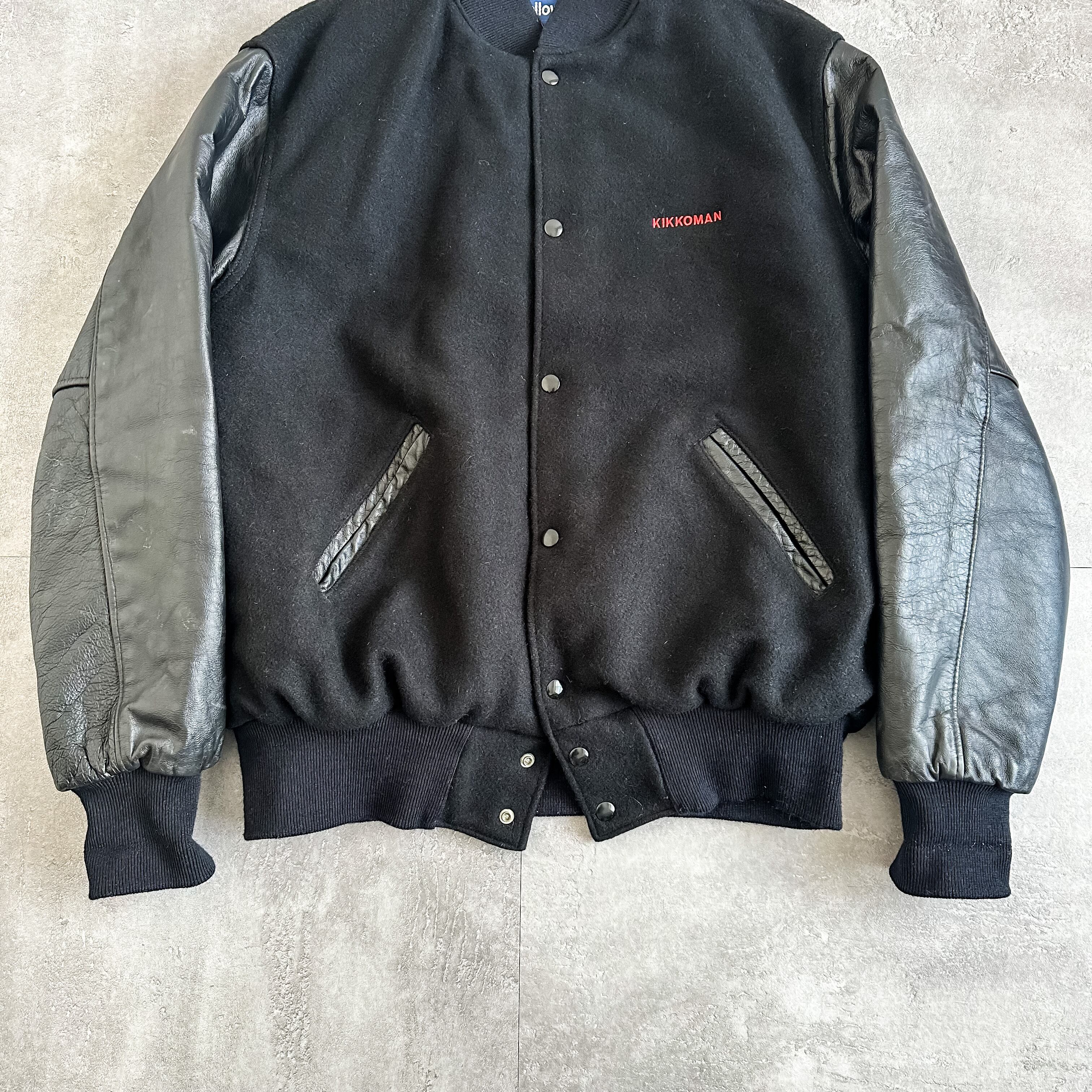 1980's~ all black wool×leather stadium jumper made in USA