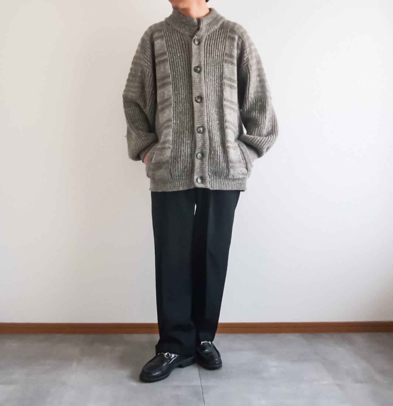 アクリル×ウールの混紡ファブリックにグレーベースのカラーリング、リブ編みとボーダーが切り替えになったデザインがグッドな一枚。