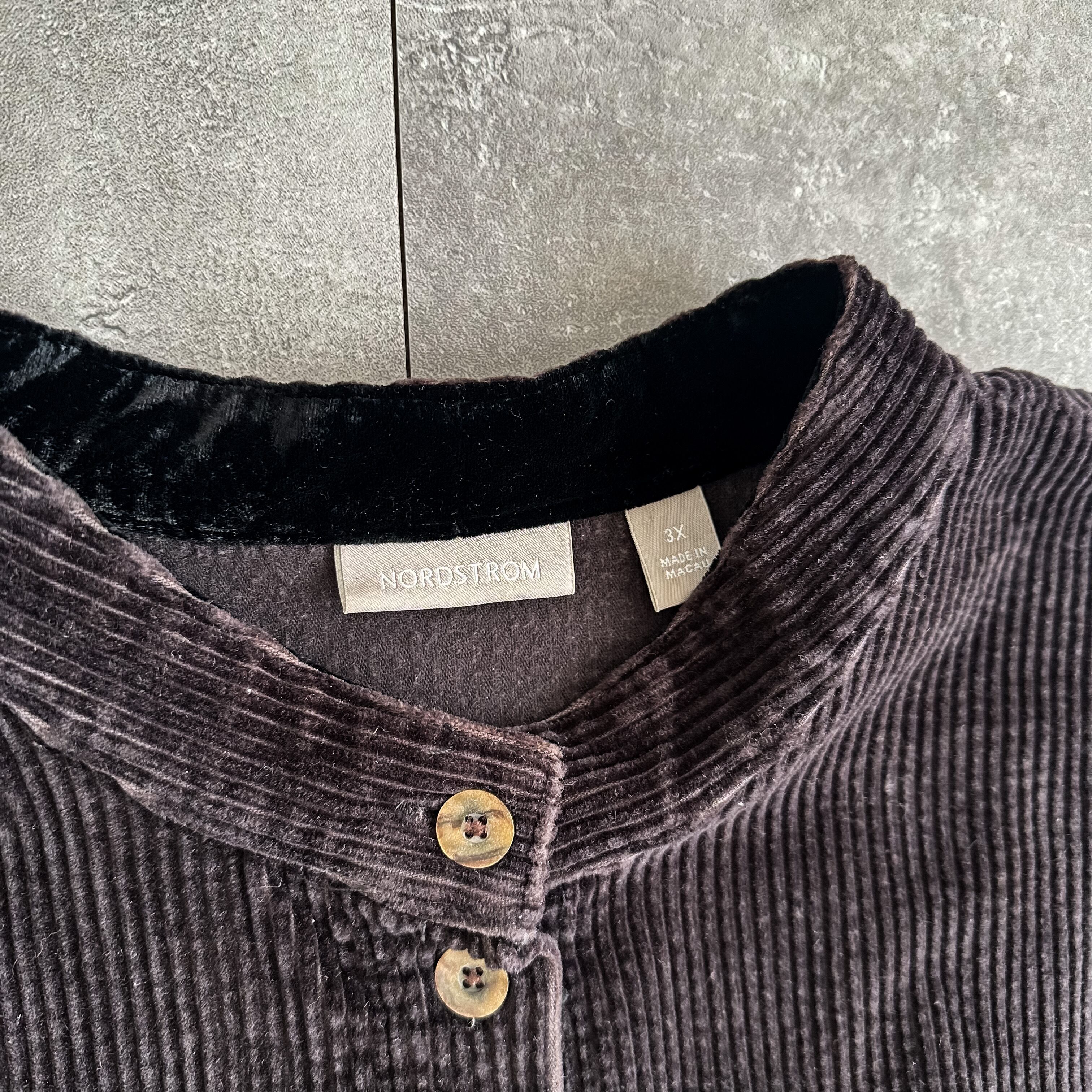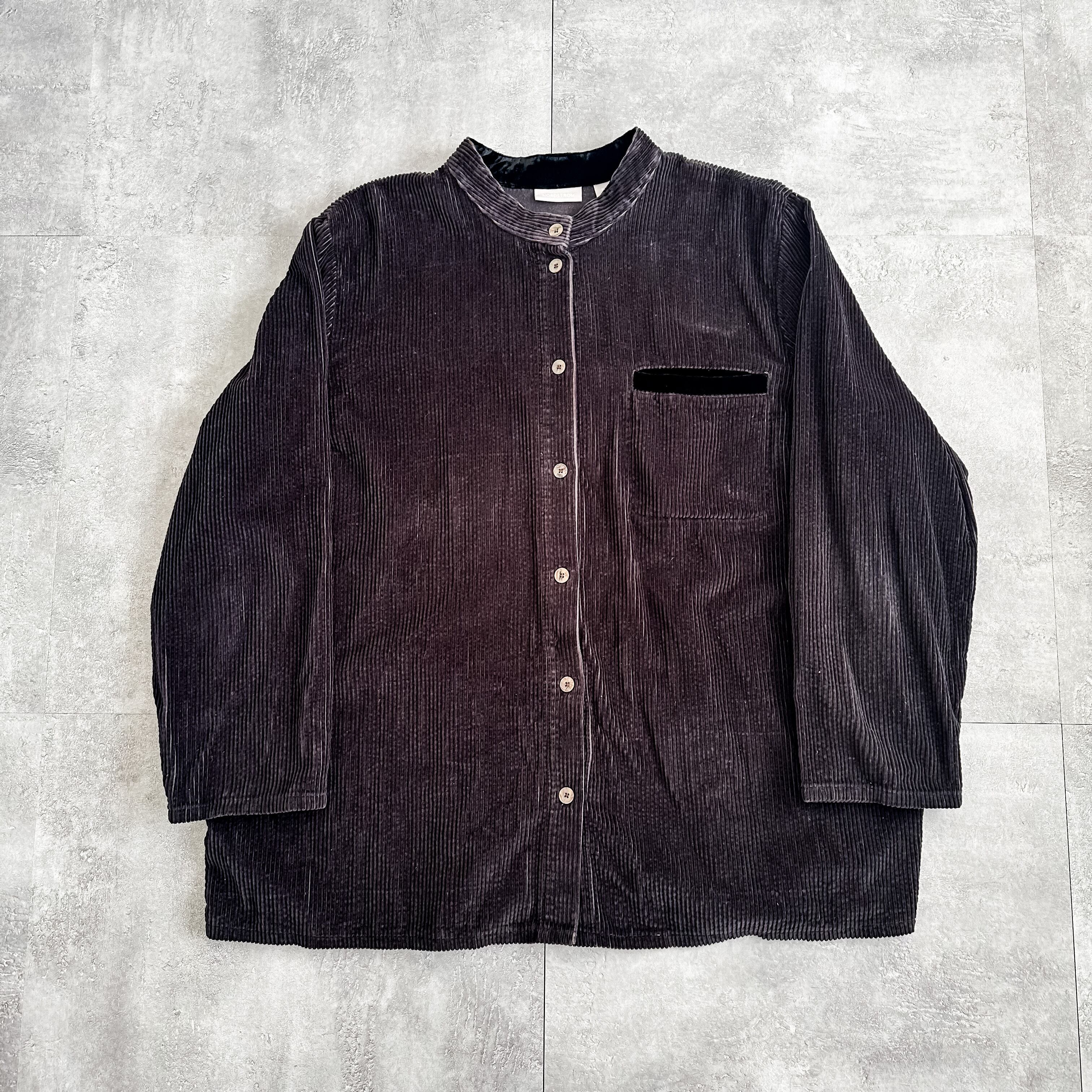 2000's "NORDSTROM" black heavy corduroy band collar shirt