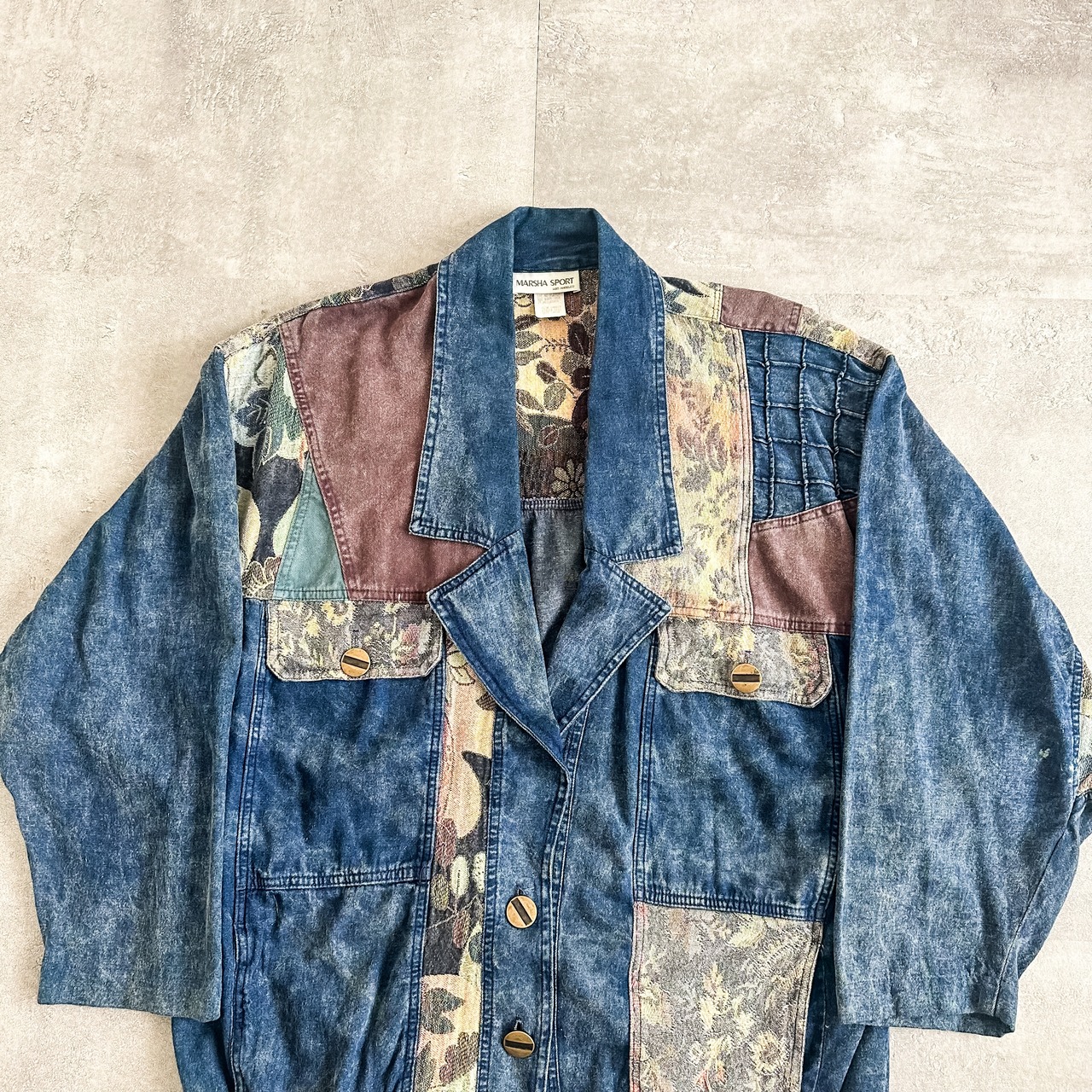 デニムジャケットではかなり珍しいゴブラン織りやコットン生地のパッチワークになった素晴らしいデザイン。